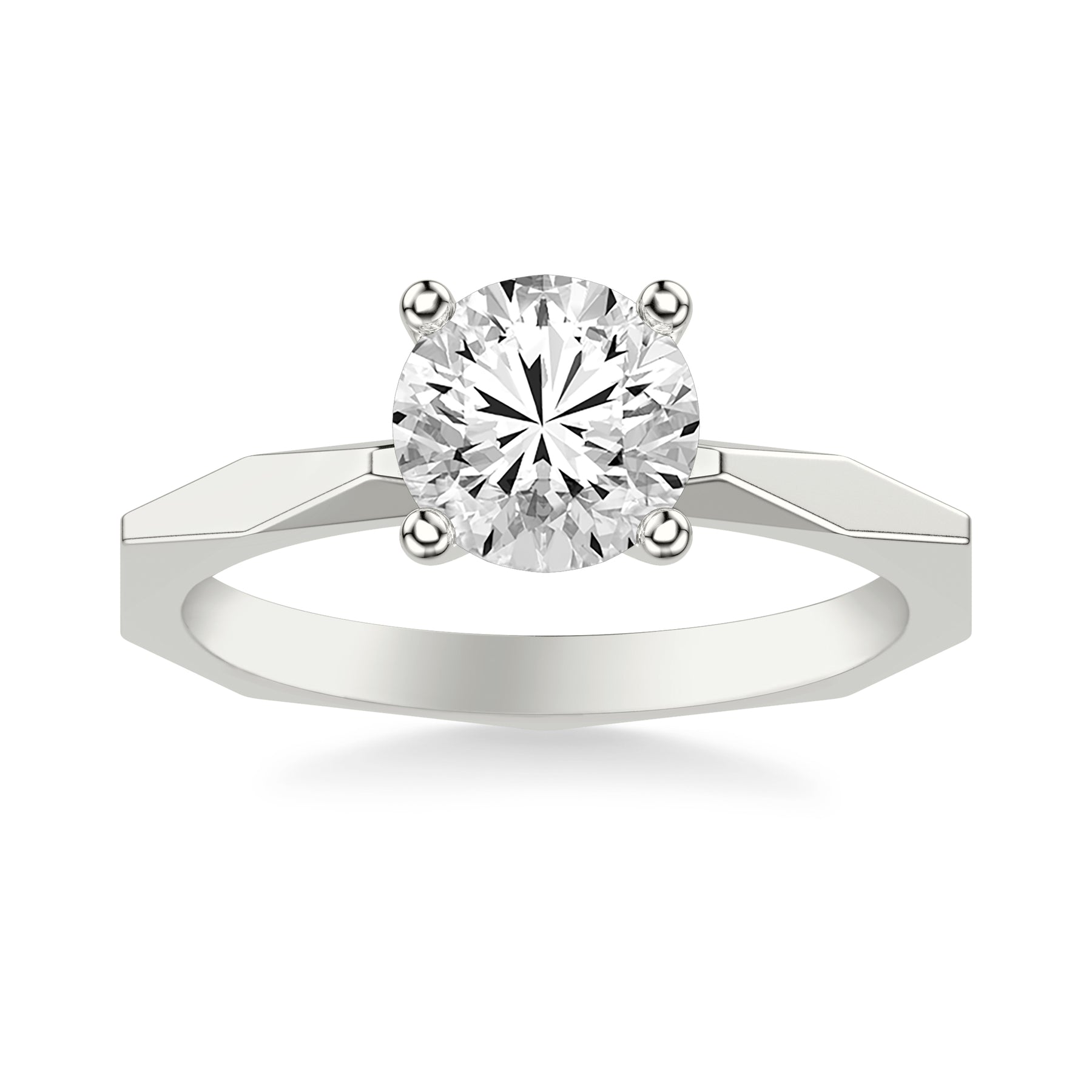 Contemporary Solitaire Engagement Ring with Geometric Faceted Shank