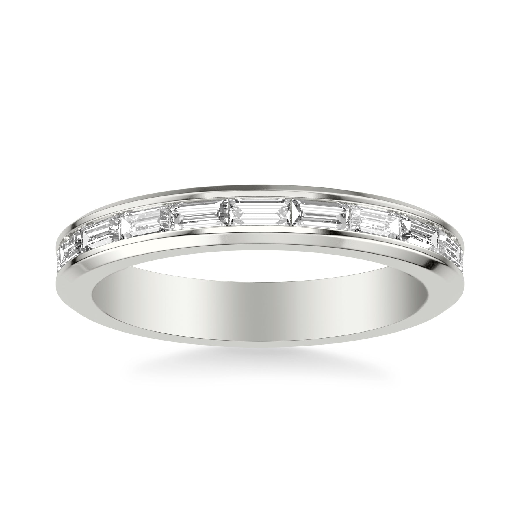 Contemporary Beveled Wedding Band with Channel Set East/West Baguette Diamonds