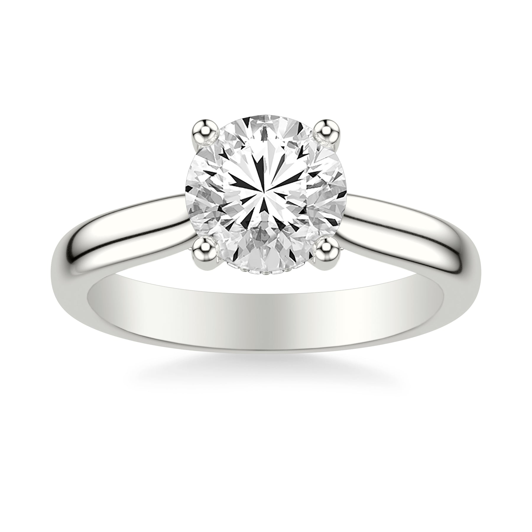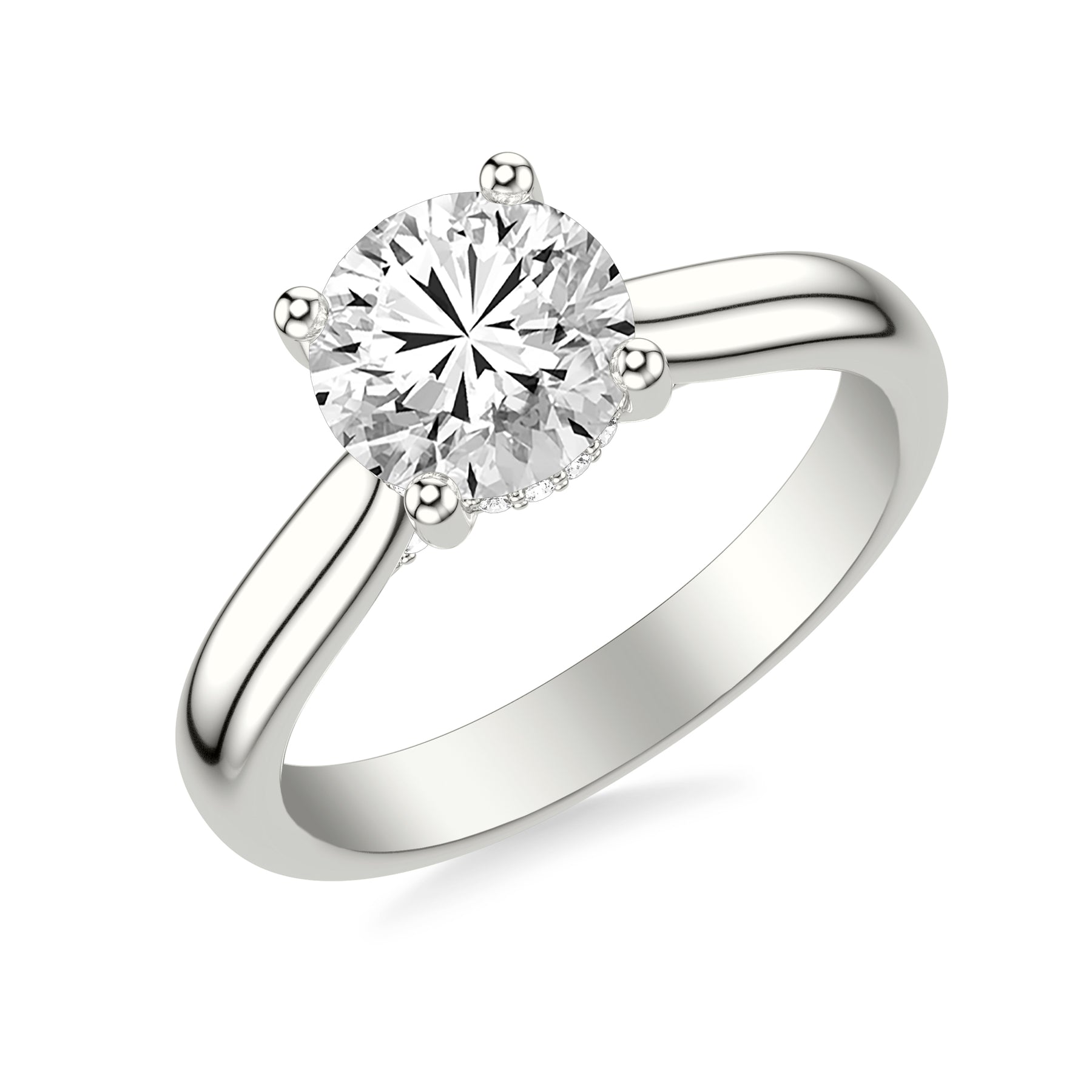 Classic Solitaire Engagement Ring with Hidden Halo and Diamond Bridge with 3MM Wide Polished Shank