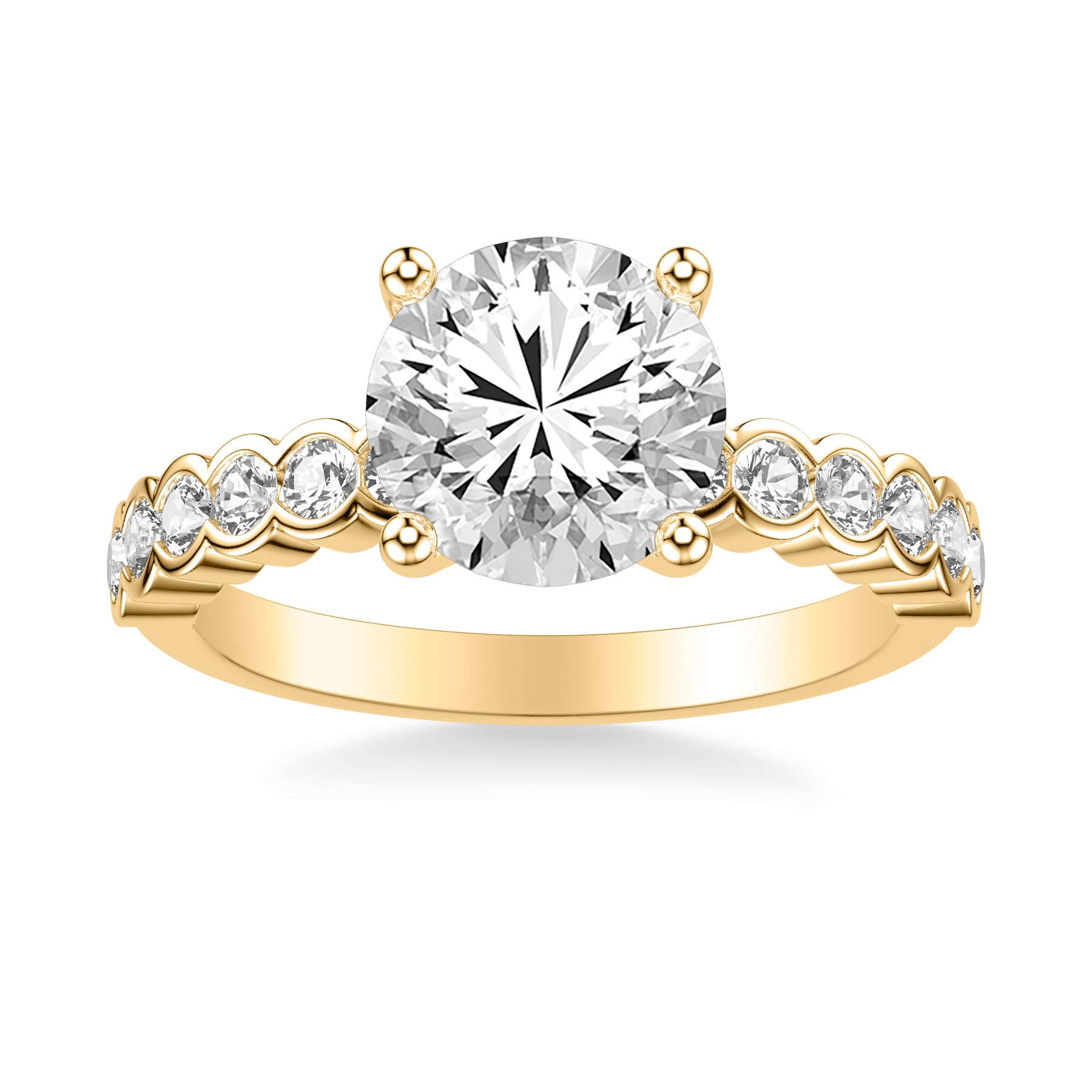Contemporary Engagement Ring with Bezel Set Round Diamond Scalloped Shank