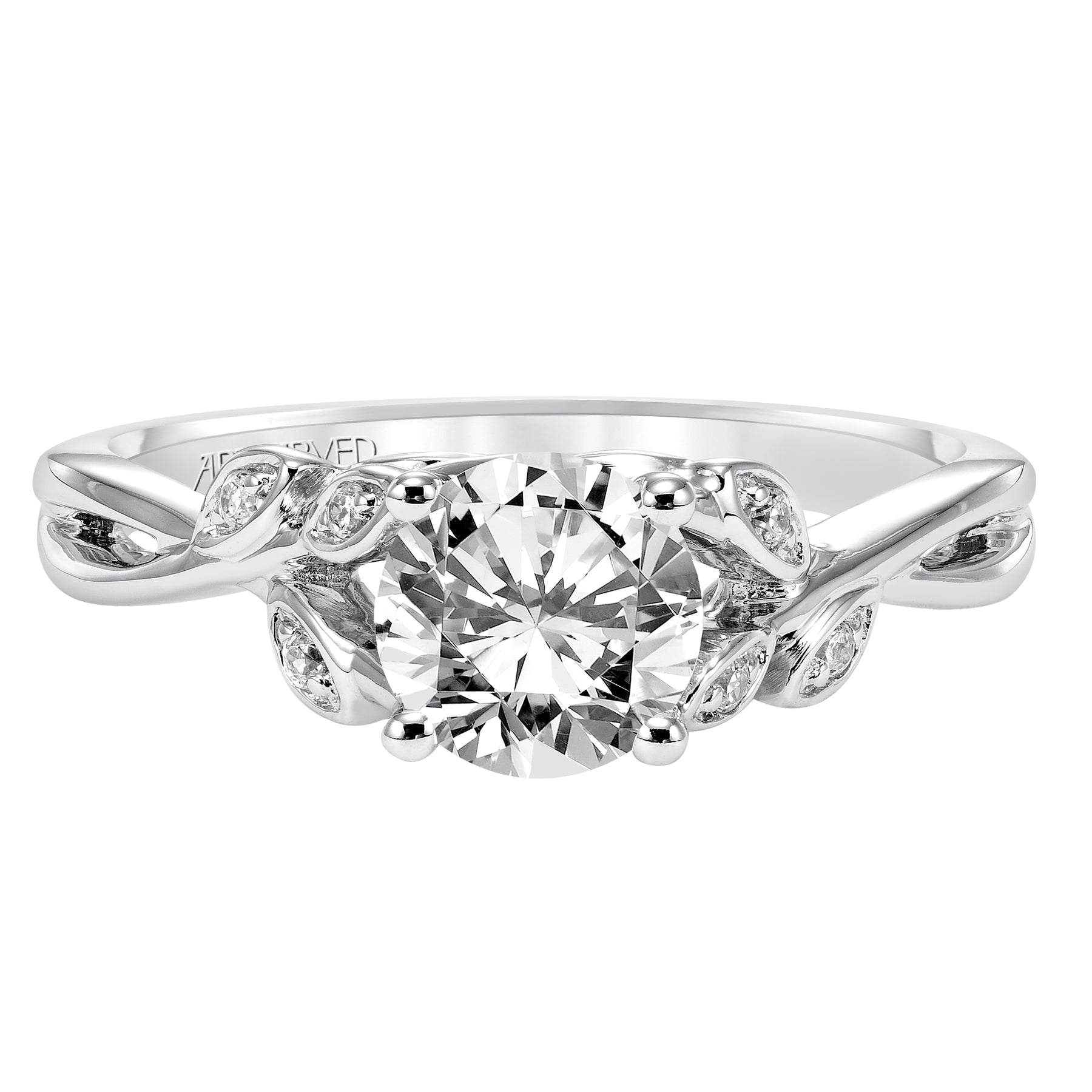 Floral Engagement Ring with Hidden Diamond Petal Accents and Polished Bypass Shank