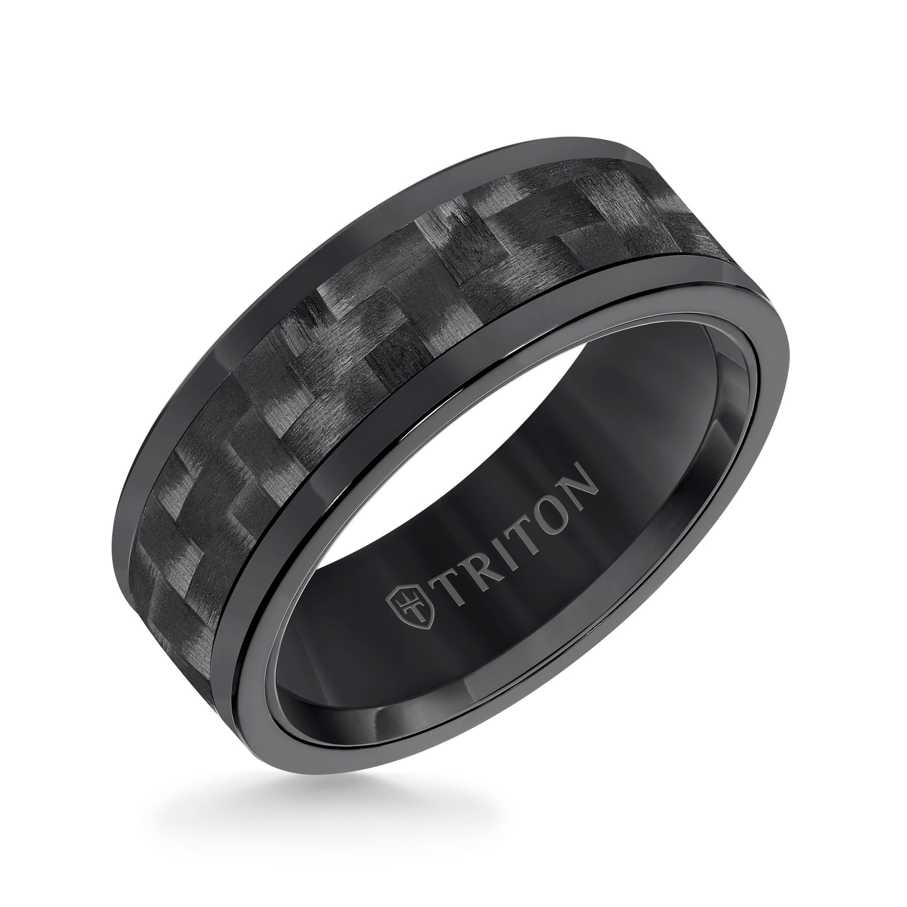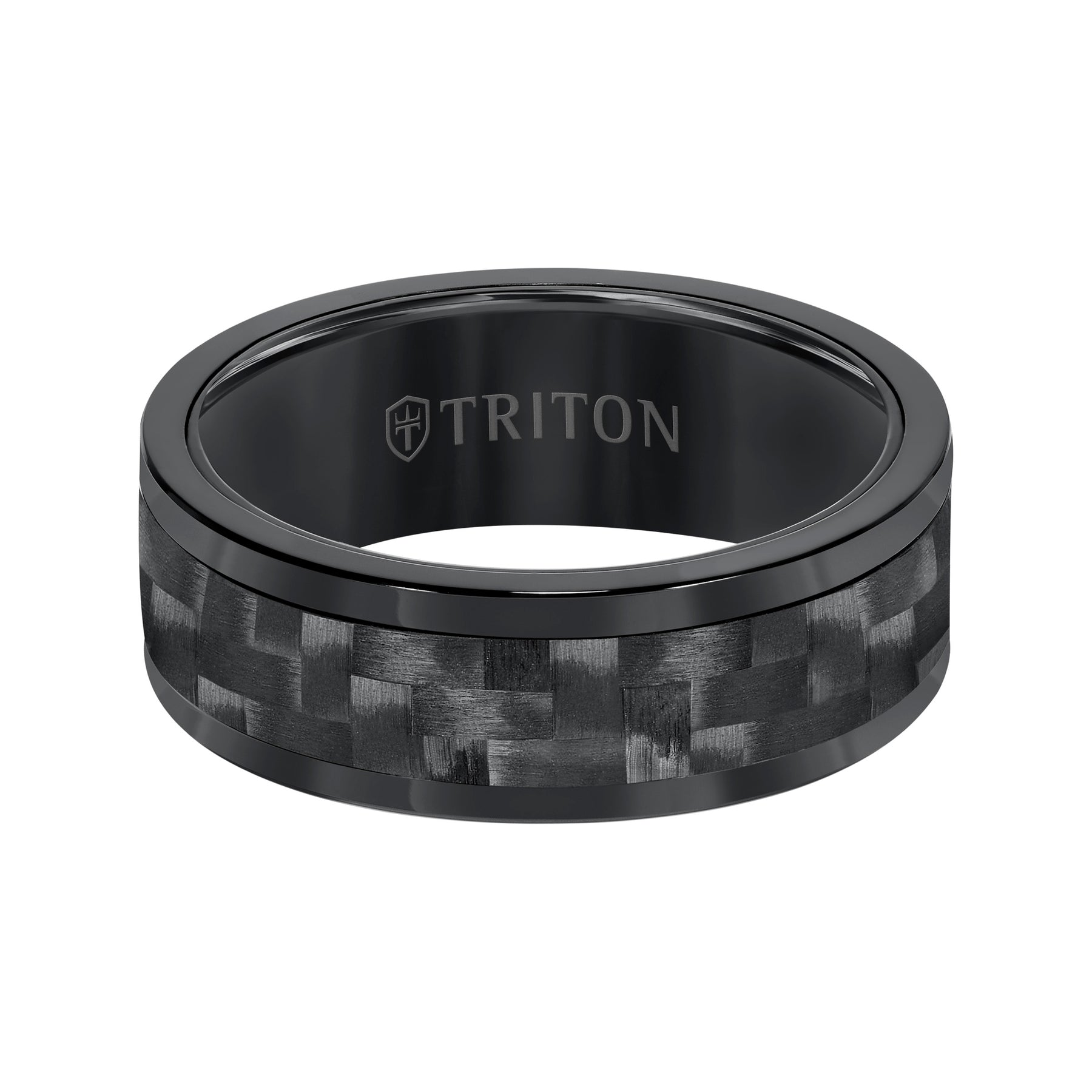 8MM Comfort Fit Black Tungsten Carbide with Black 3K Carbon Fiber Insert Center & Bright Rims