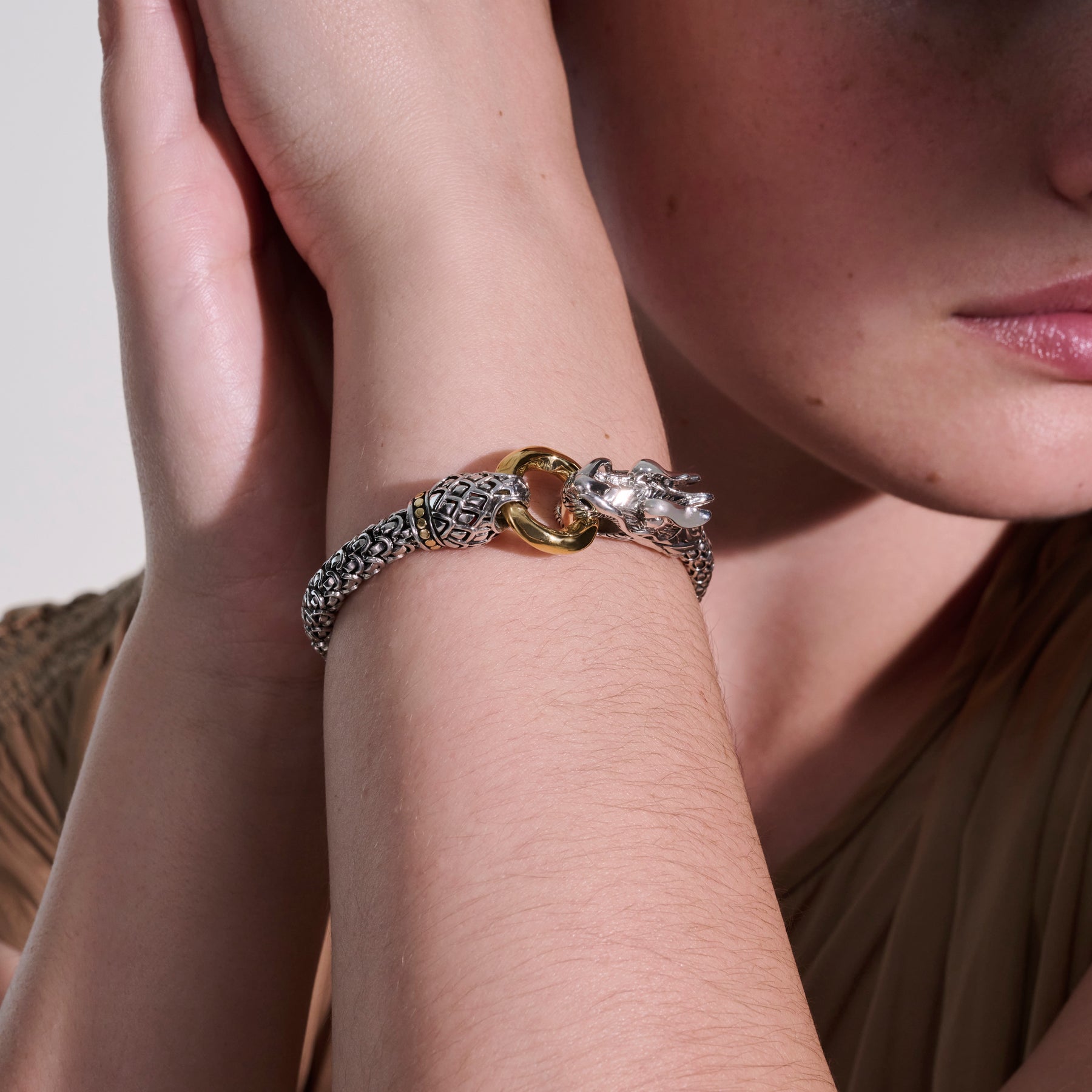 Naga Heritage 18K Gold & Silver Dragon Bracelet with 18K Gold Ring, Size US BG
