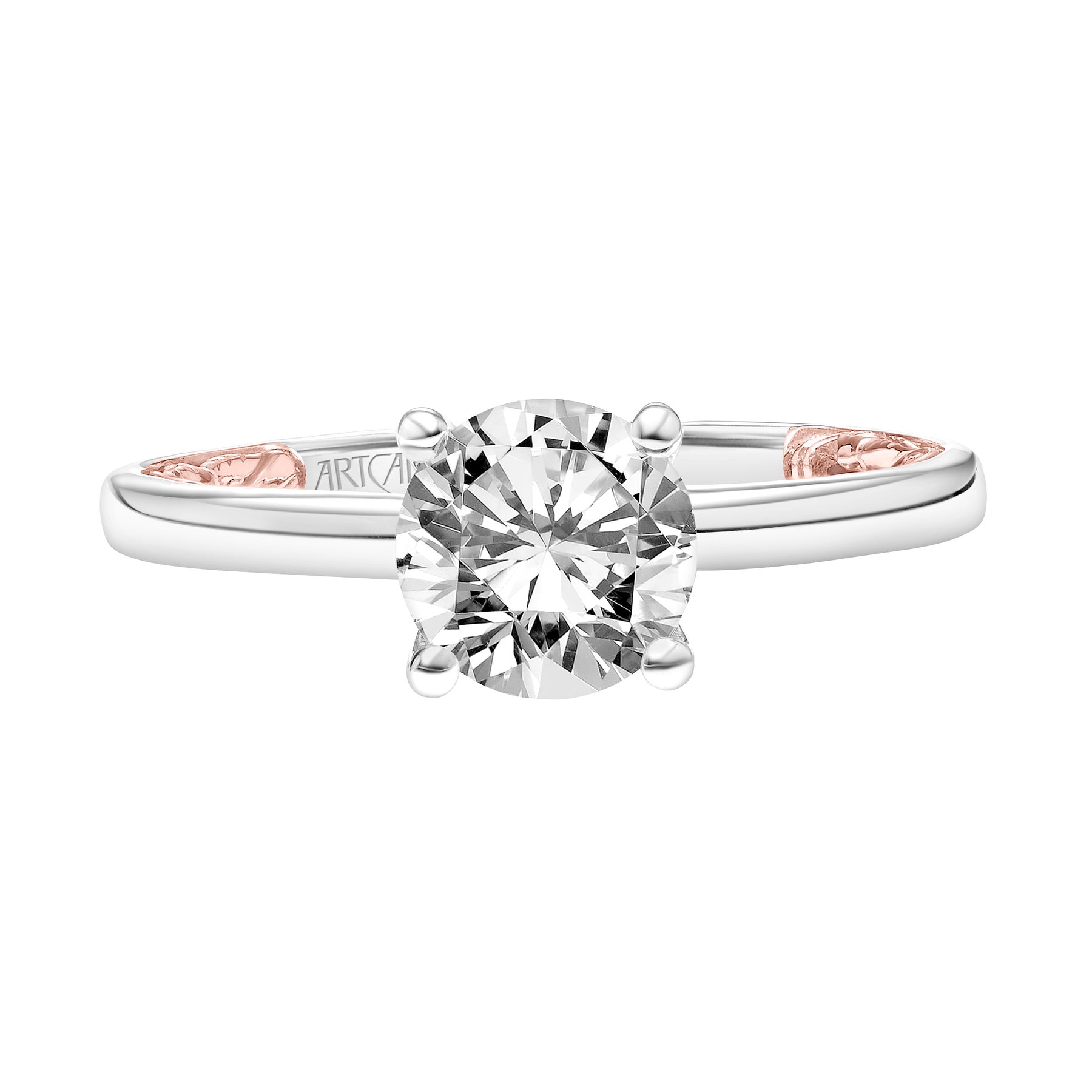 Lyric Solitaire Diamond Engagement Ring with Inner Carved details and Polished Shank