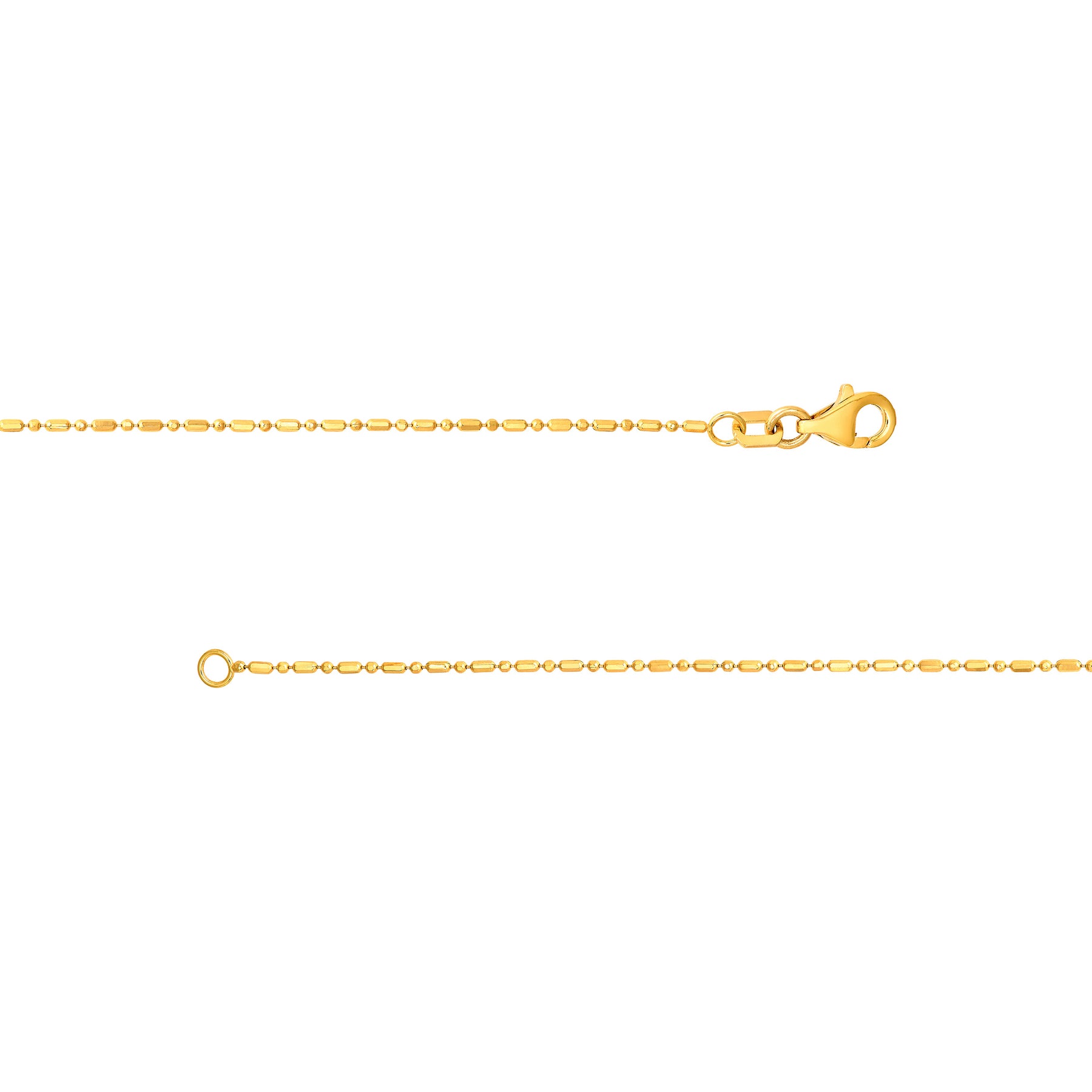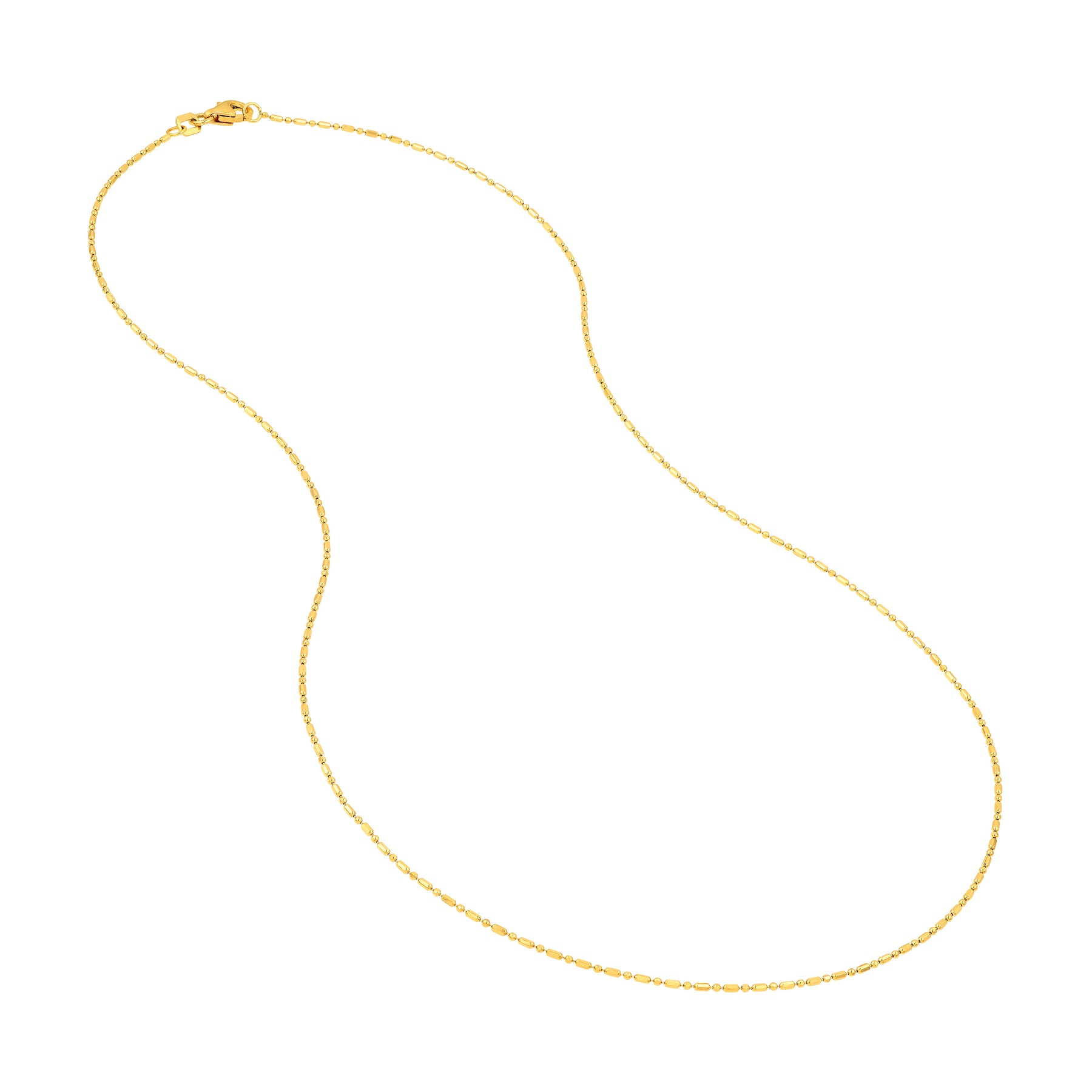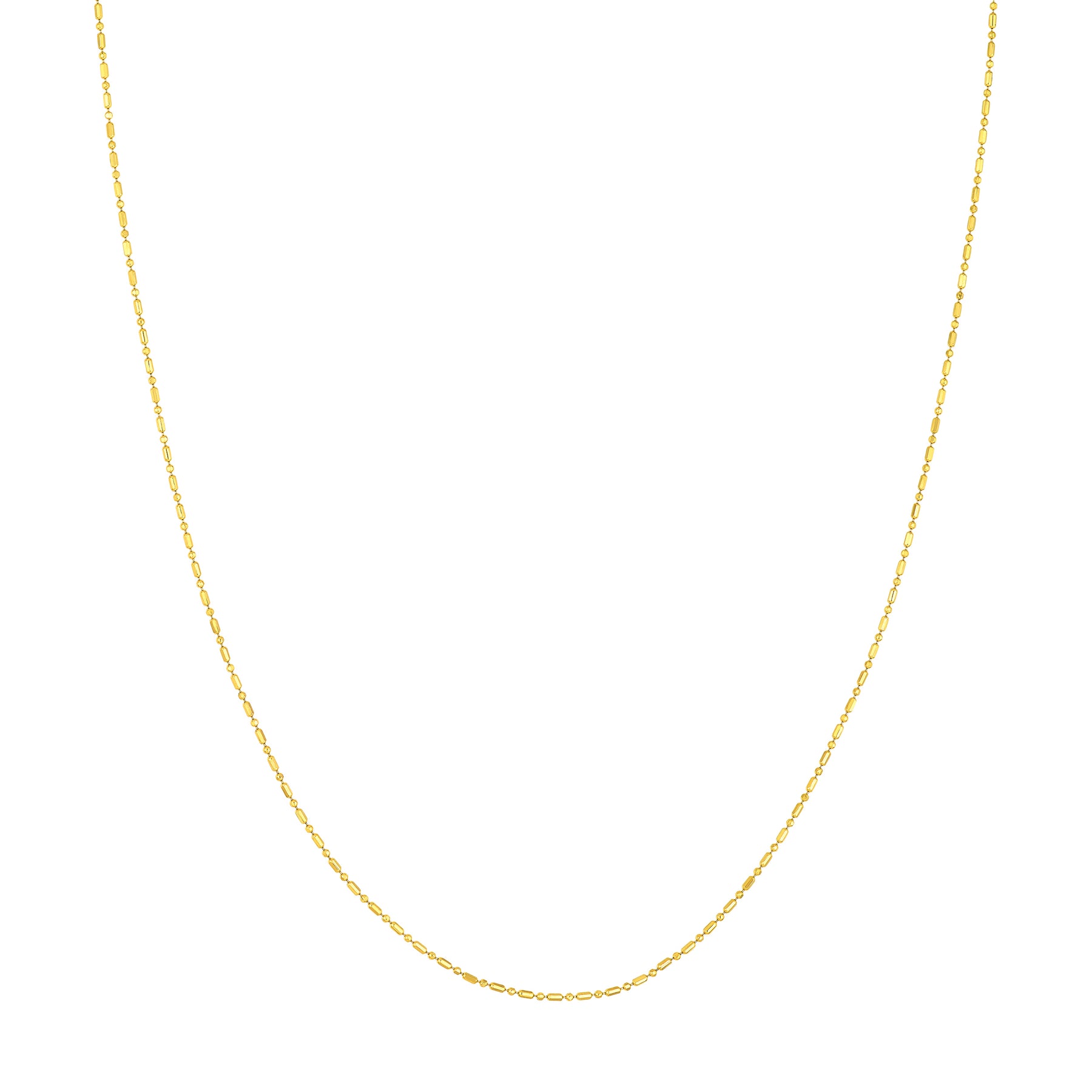 Elevate your stack with this unique and chic 14K solid gold chain, featuring a delicate 1mm D/C Bead and Bar design for endless styling possibilities.