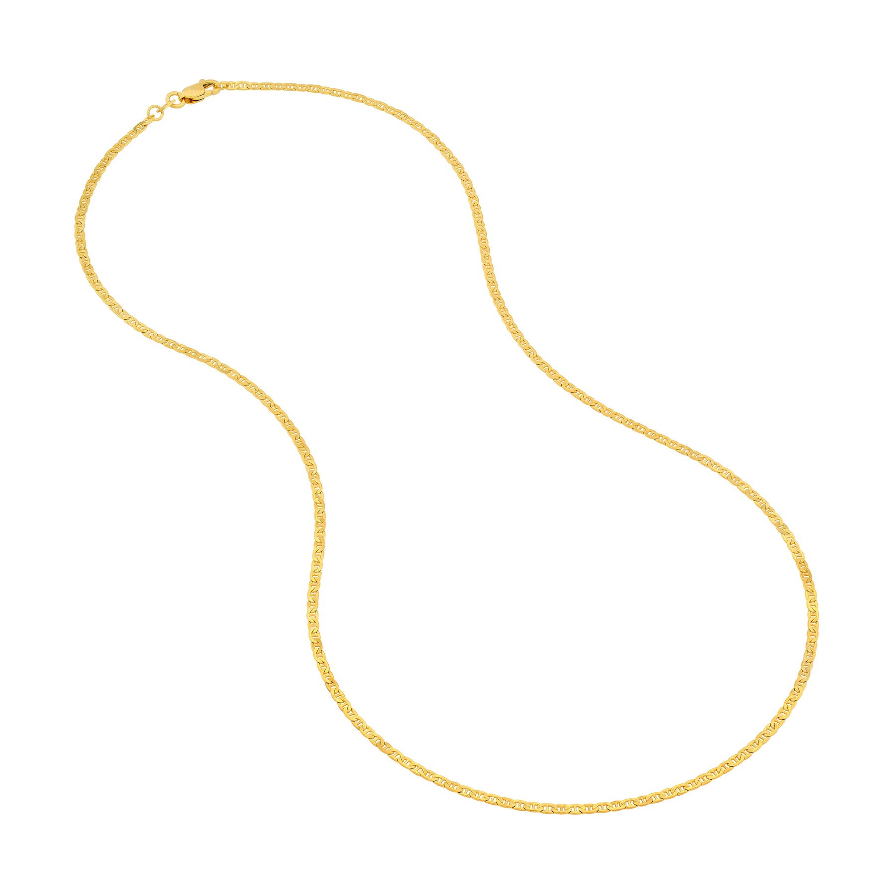 Sleek and durable, this 1.85mm solid mariner chain features a design with alternating oval links and is secured with a lobster clasp.