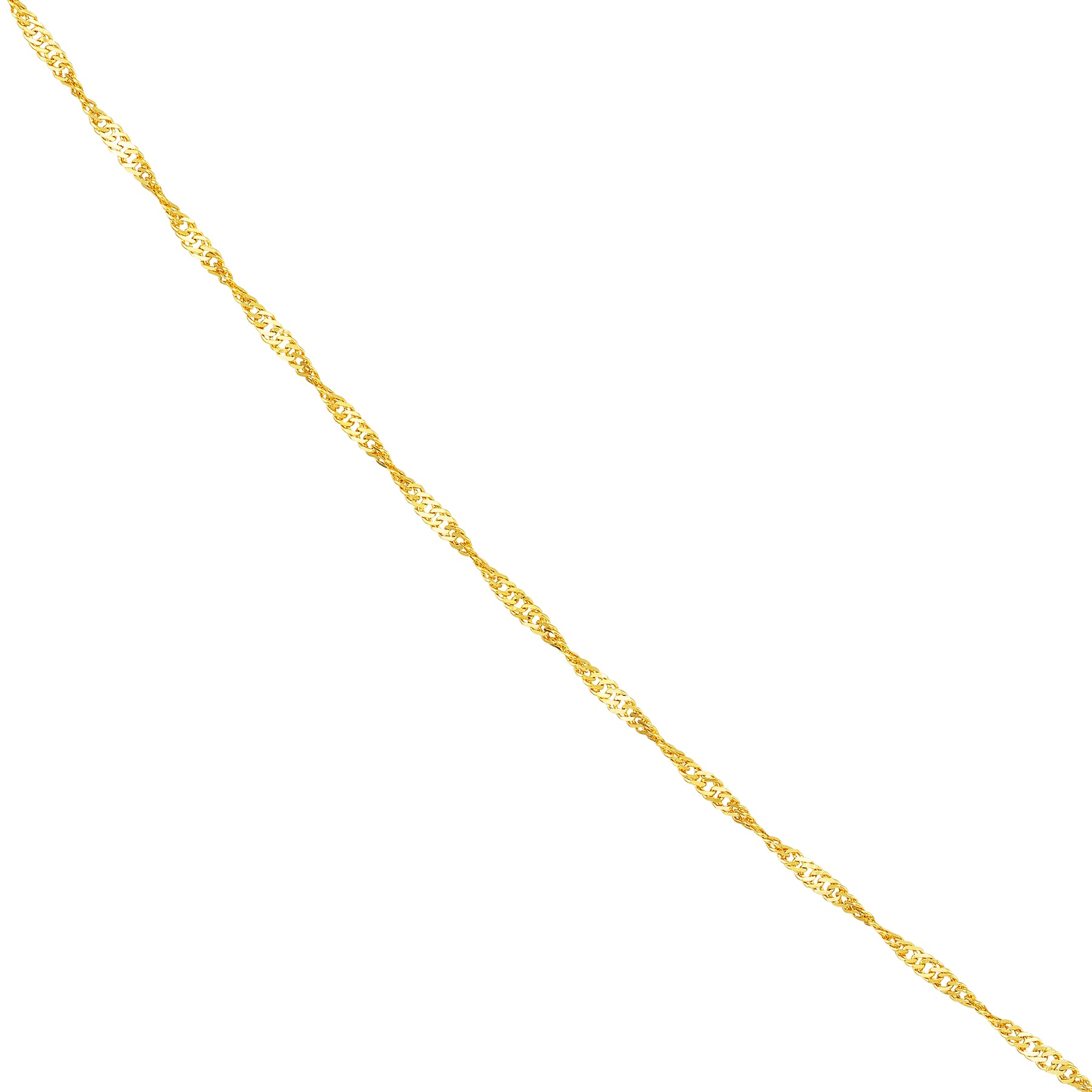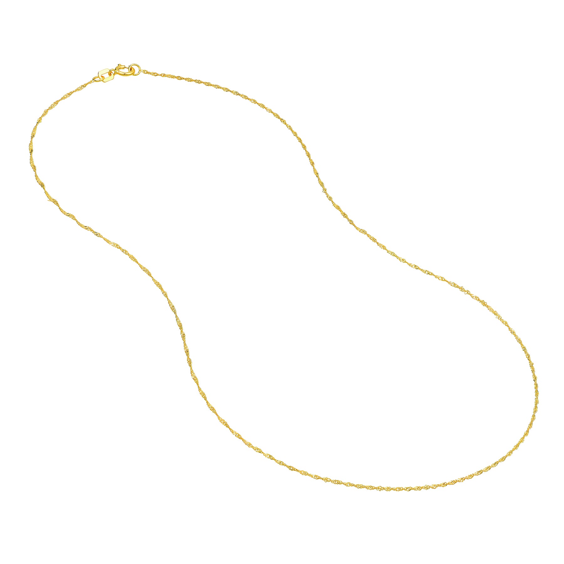 Add elegance to every look with this Singapore Chain. The lightweight chain features twist elements that perfectly reflect light adding sparkle to every outfit.