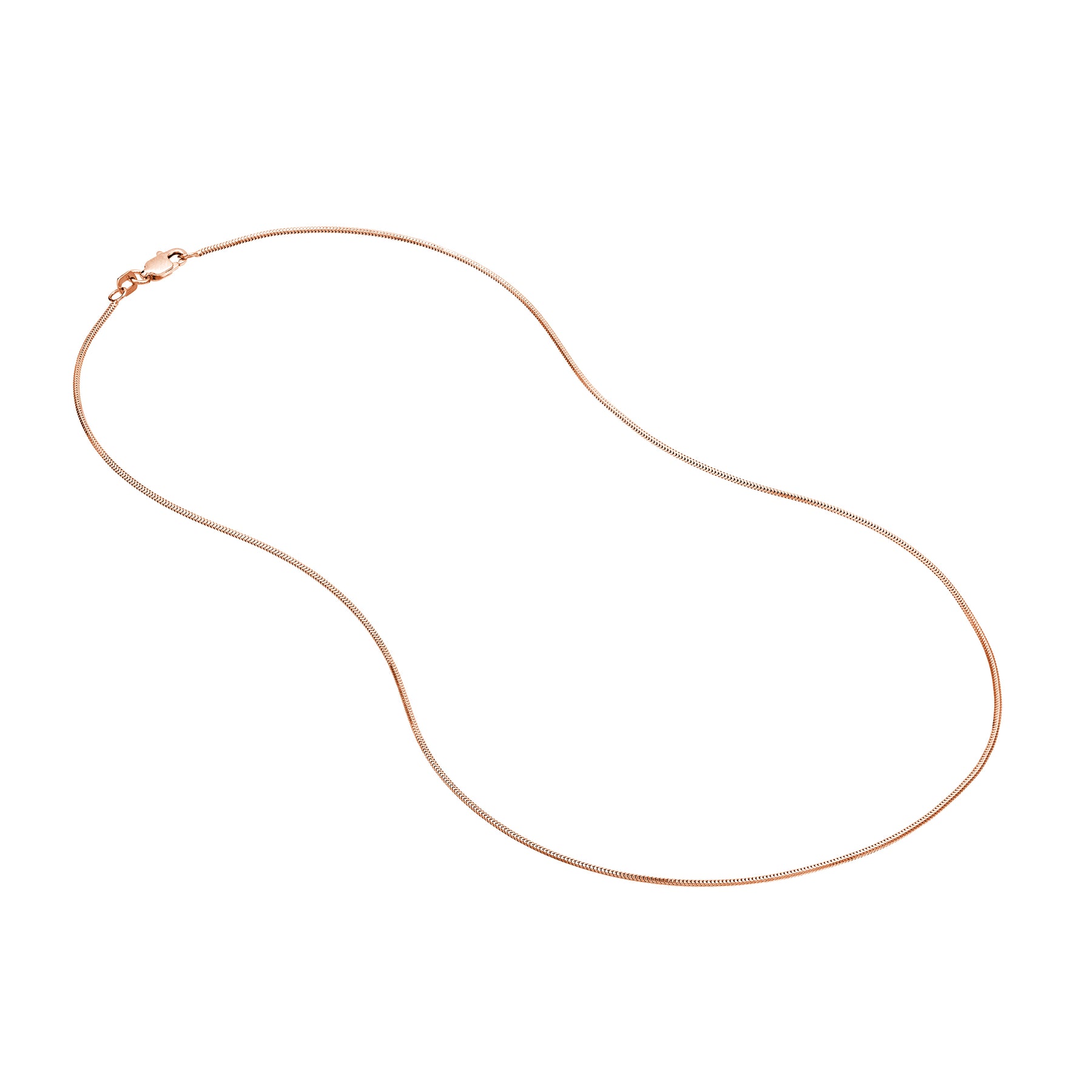 The Snake Chain is effortlessly chic. This hollow chain is perfect for layering, but can also be worn as a lovely solo piece.