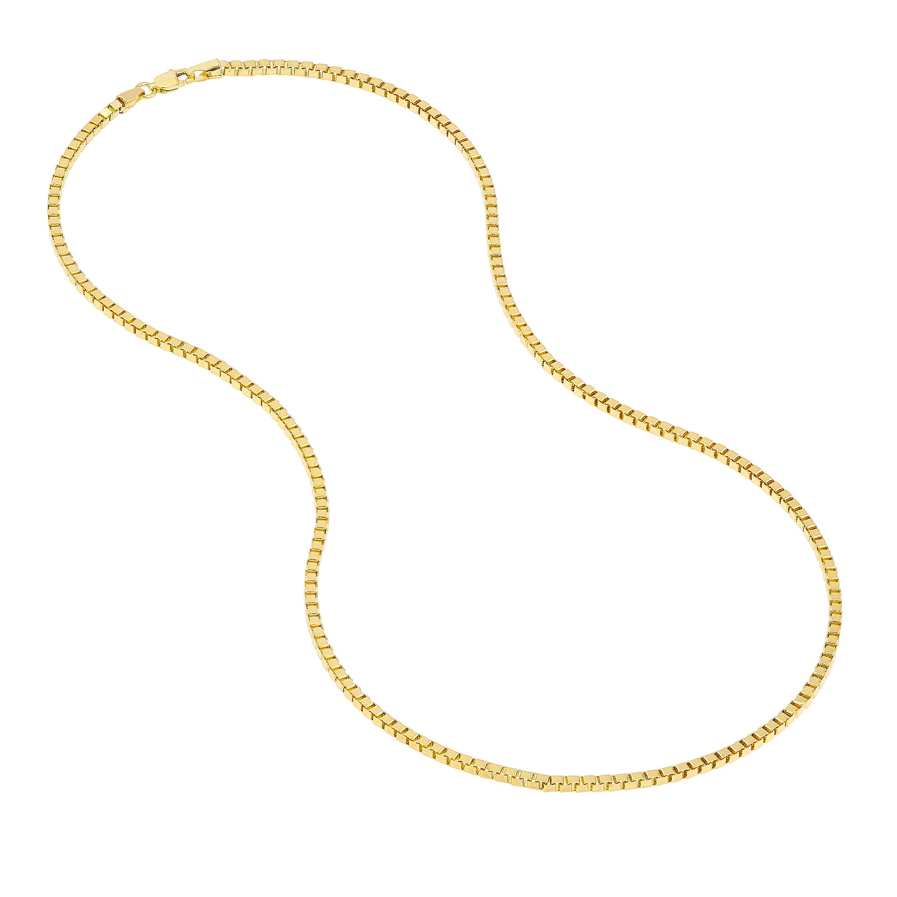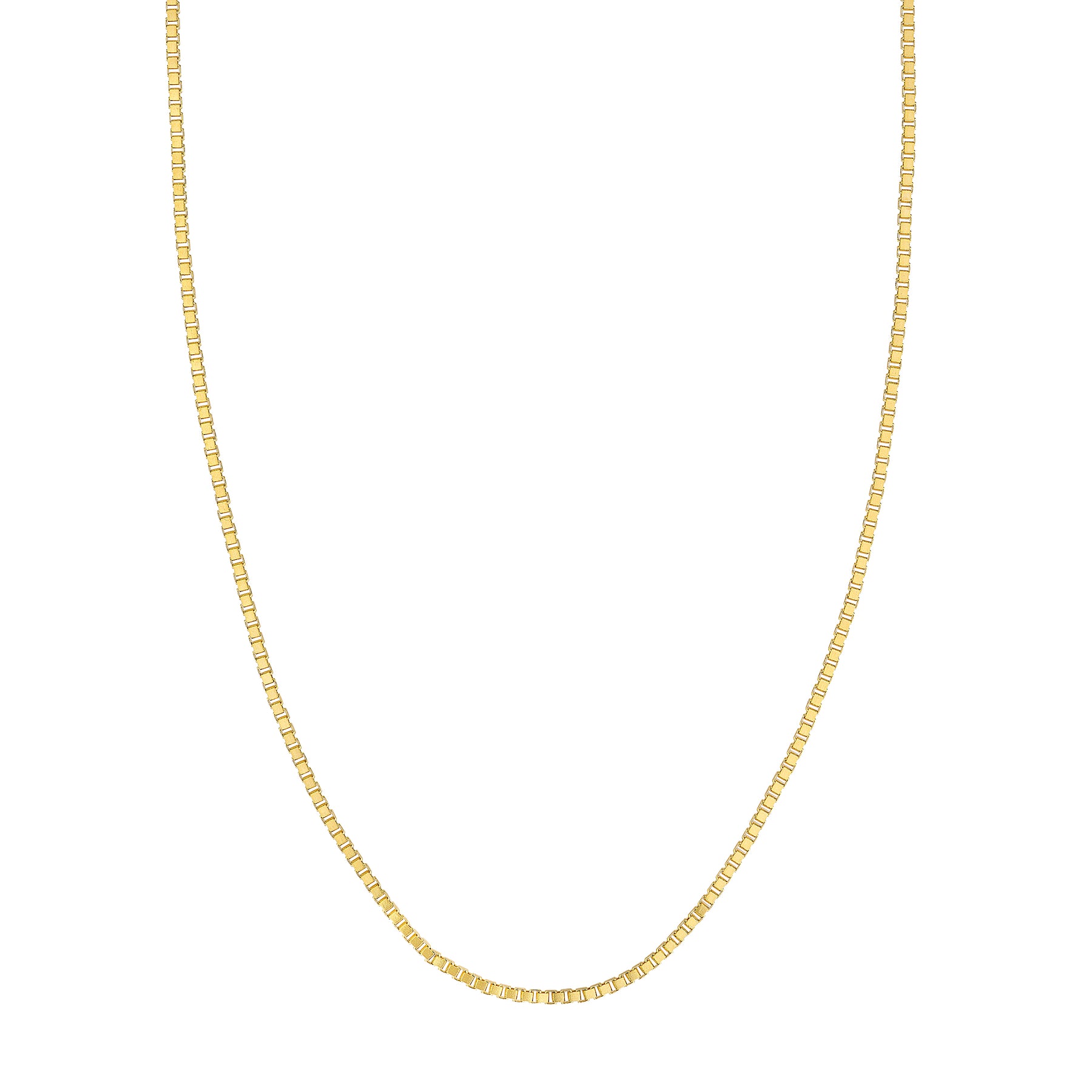 A fresh spin on your everyday looks. This box chain is 14K gold goodness.