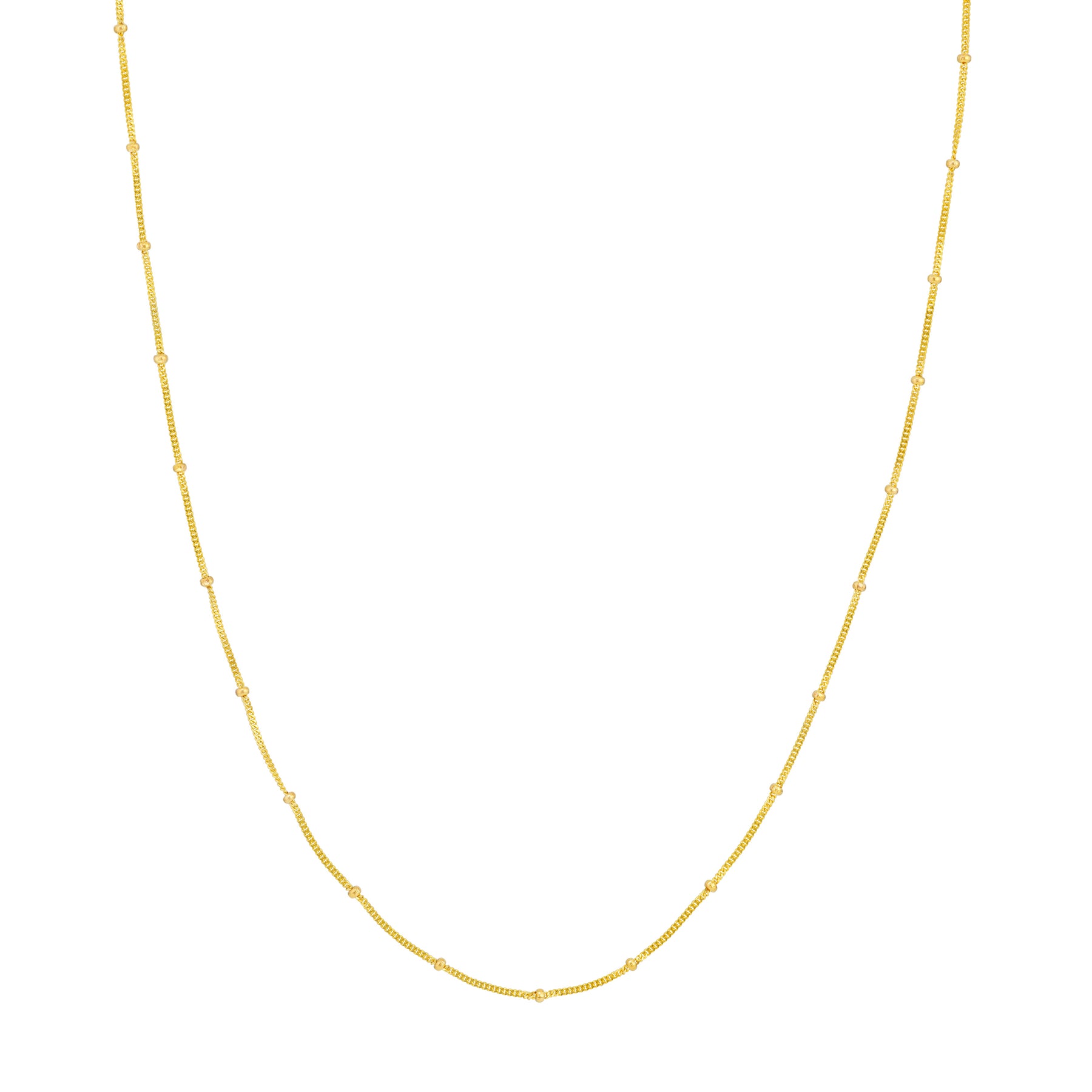 This Saturn Curb Chain features delicate bead elements. A unique, modern chain that will become a staple in your wardrobe.
