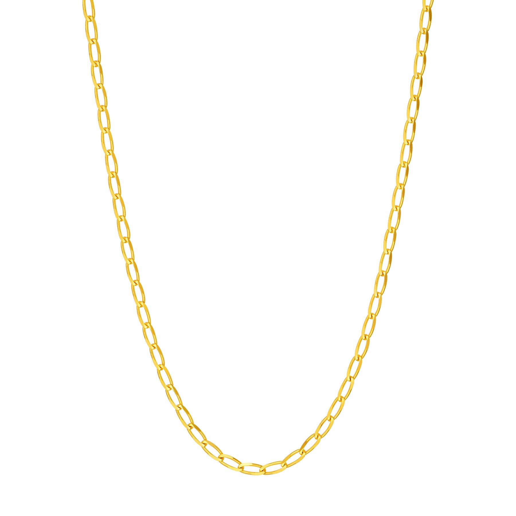 Elegant and versatile, this 2.25mm Long Link Curb Chain in 14K gold offers a timeless design, perfect for layering or wearing alone.