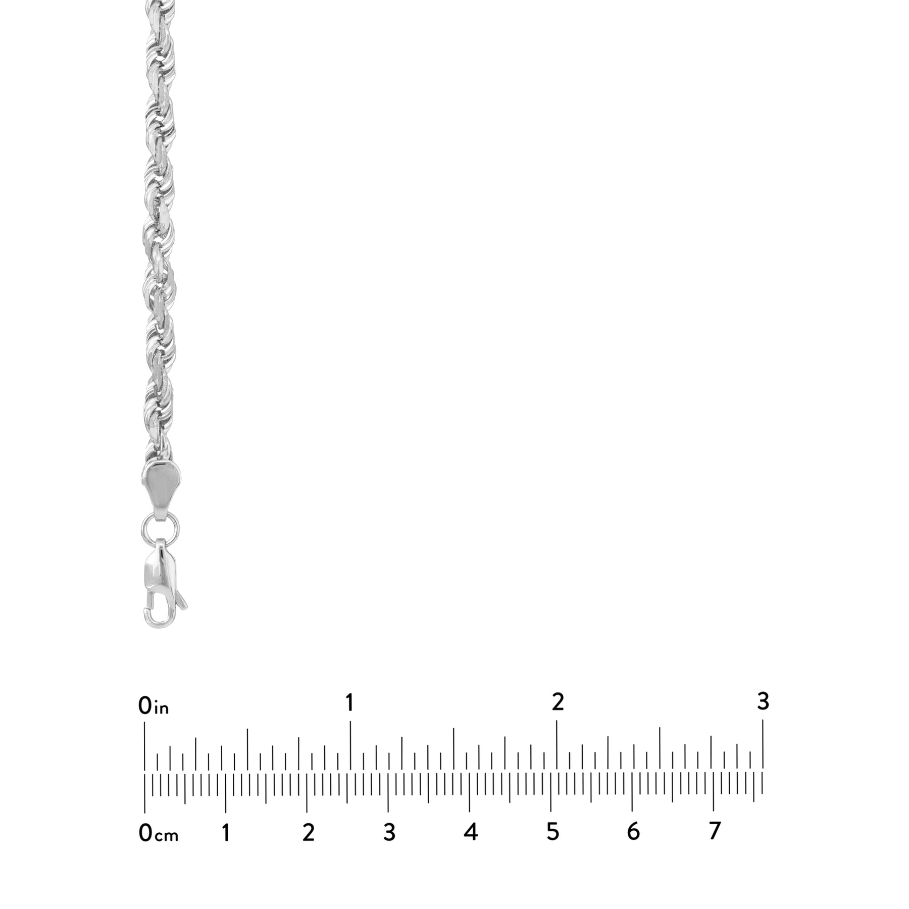 The fine quality of this chain is sure to impress. The Solid Diamond-Cut Rope Chain is made to shine. This chain measures 4.4mm wide.