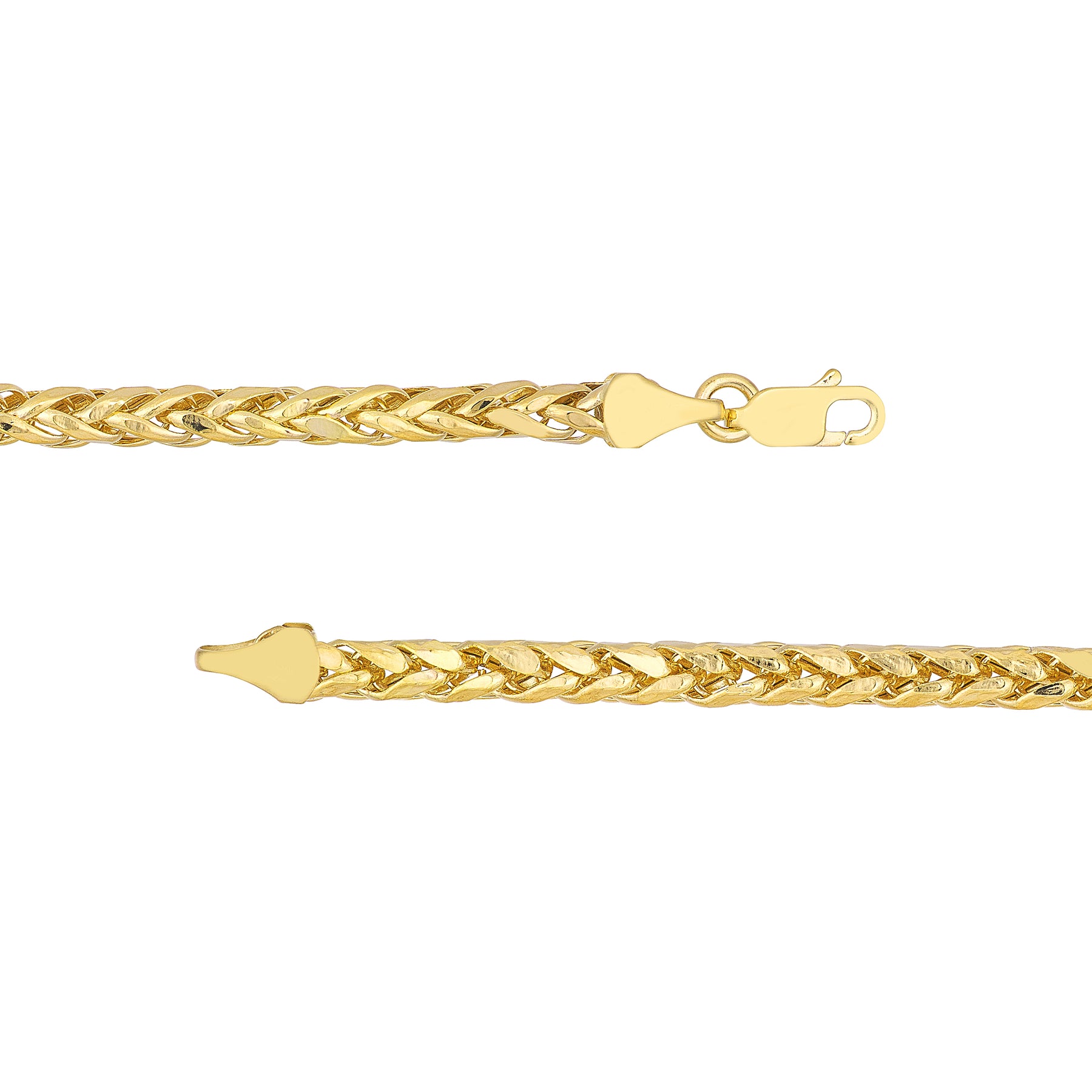 The artisan Diamond-Cut Light Wheat Chain is a true beauty. This elegant 10K yellow gold piece measures 4.5mm and hooks with a l