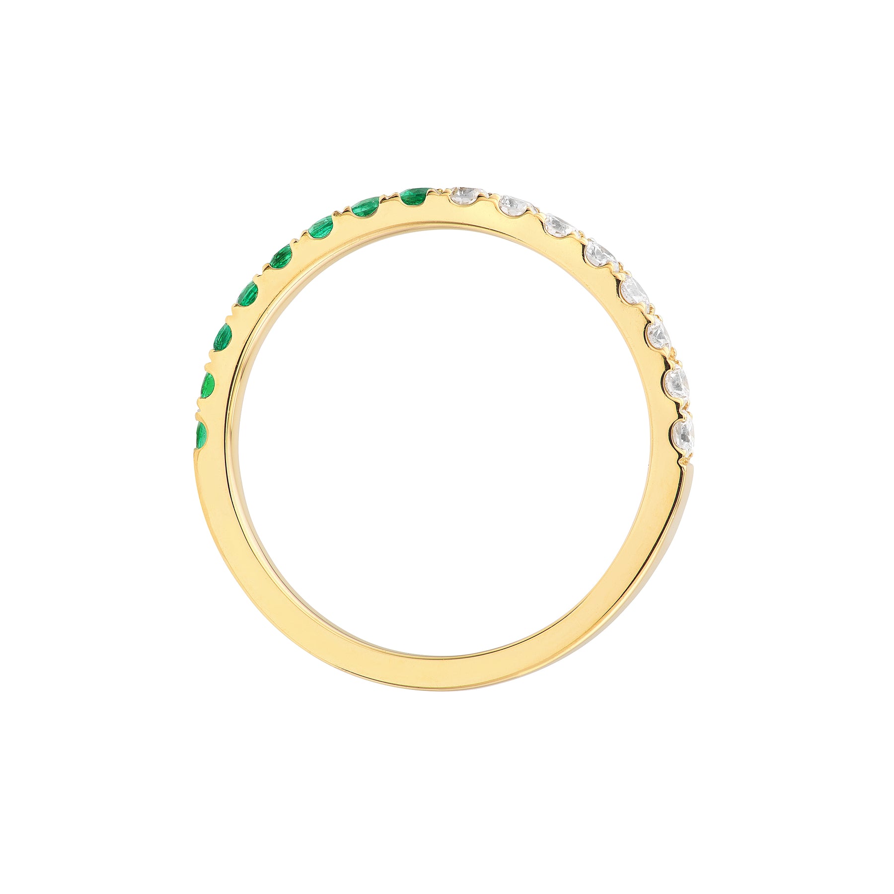 Celebrate a milestone with this alternating colored ring set halfway among a timeless 14K gold band. This band features 1/4tcw, 2mm diamonds & emeralds.