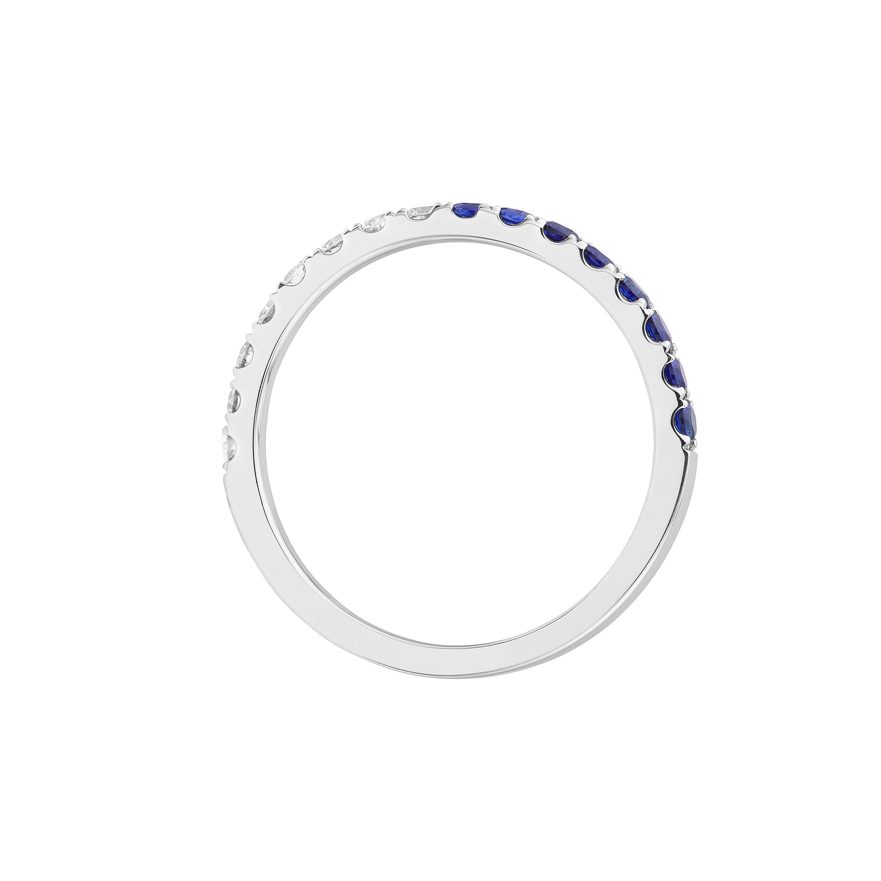 Celebrate a milestone with this alternating colored ring set halfway among a timeless 14K white gold band. This ring features 2mm diamonds & sapphires.