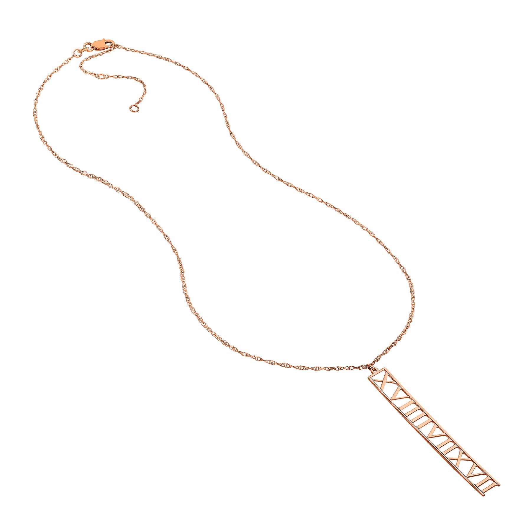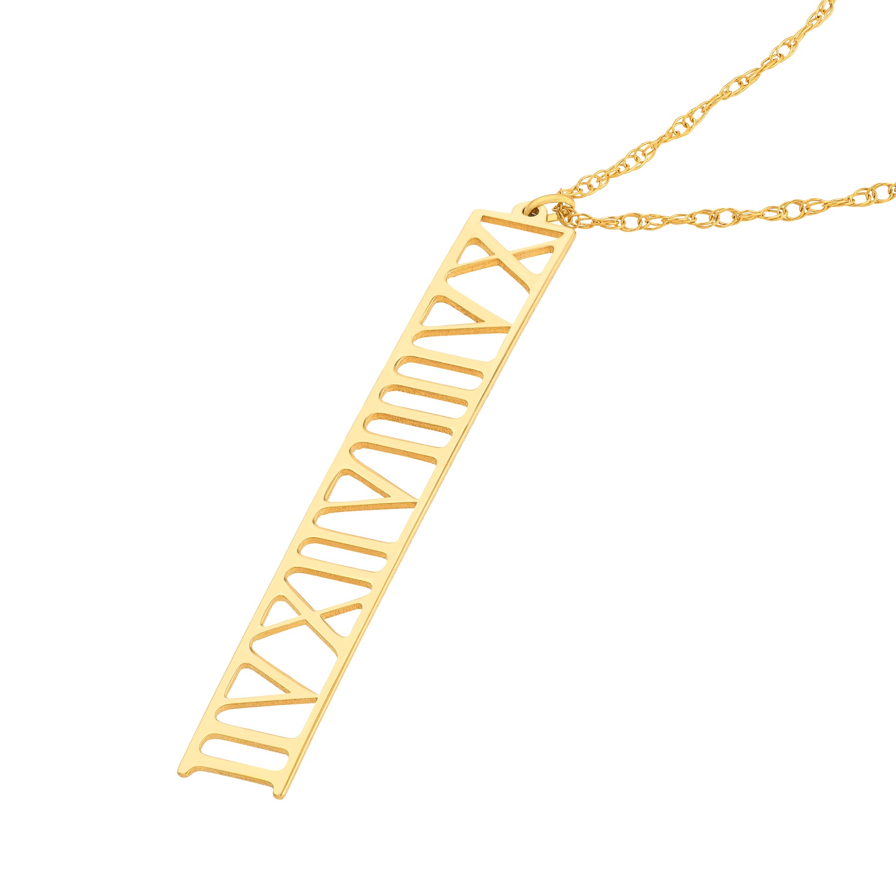 Make that special date a fond gold memory. This 7mm Vertical Roman Numeral Pendant Necklace makes for the perfect gift. Made in 14K gold.