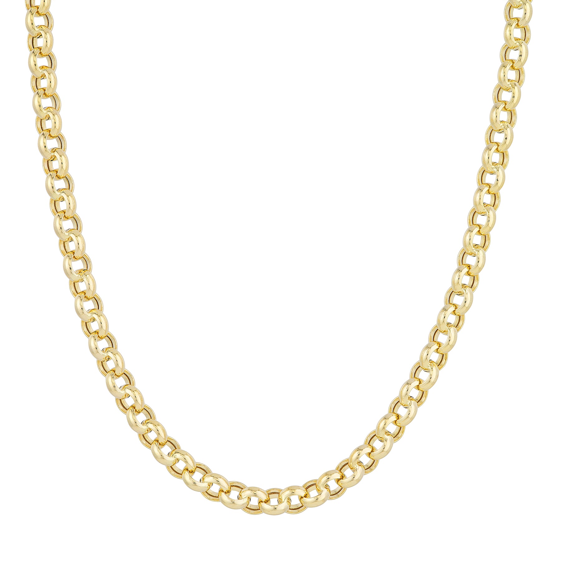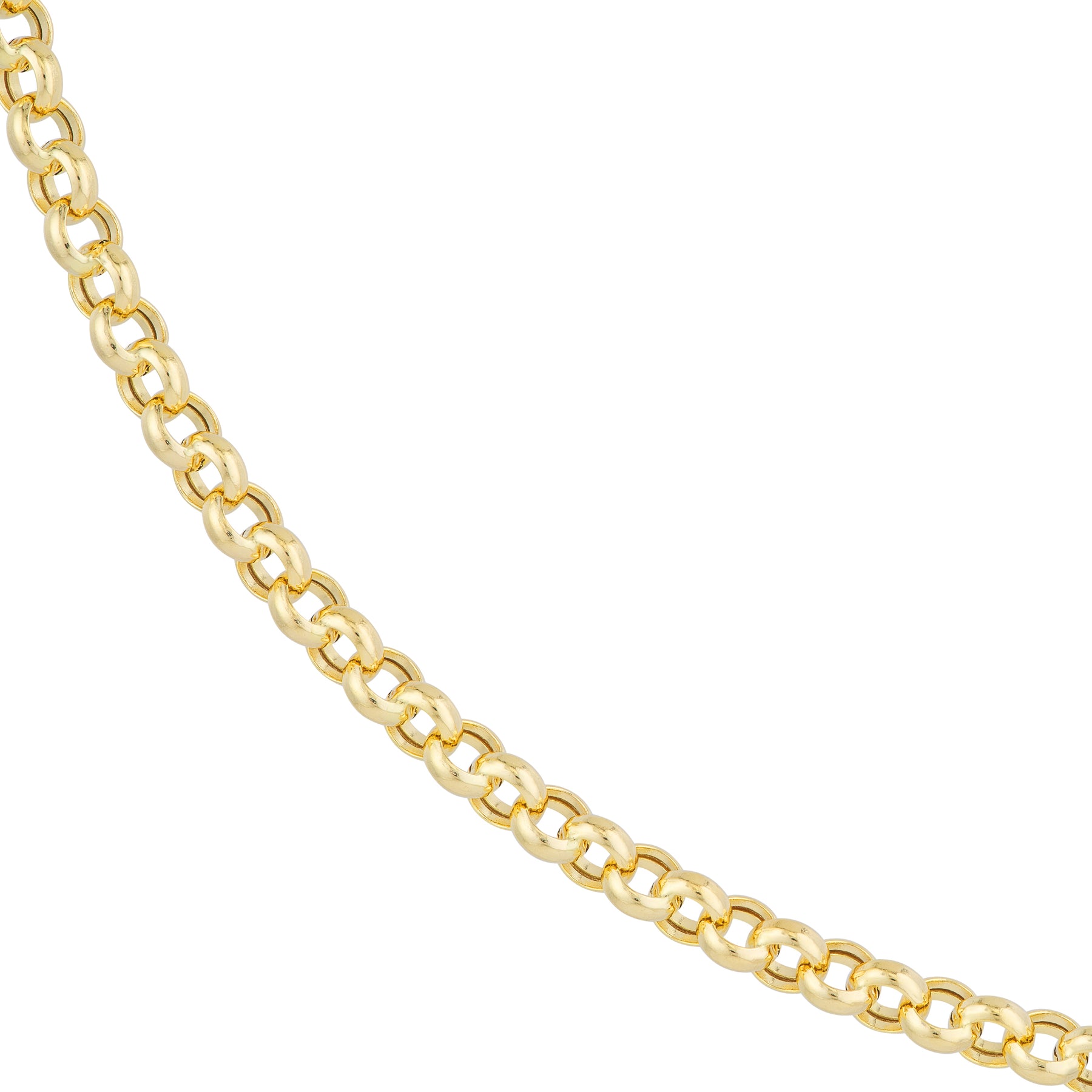 Build your collection with our hollow 8mm Rolo chain in 14K gold. The pear shaped lock finishes the look.