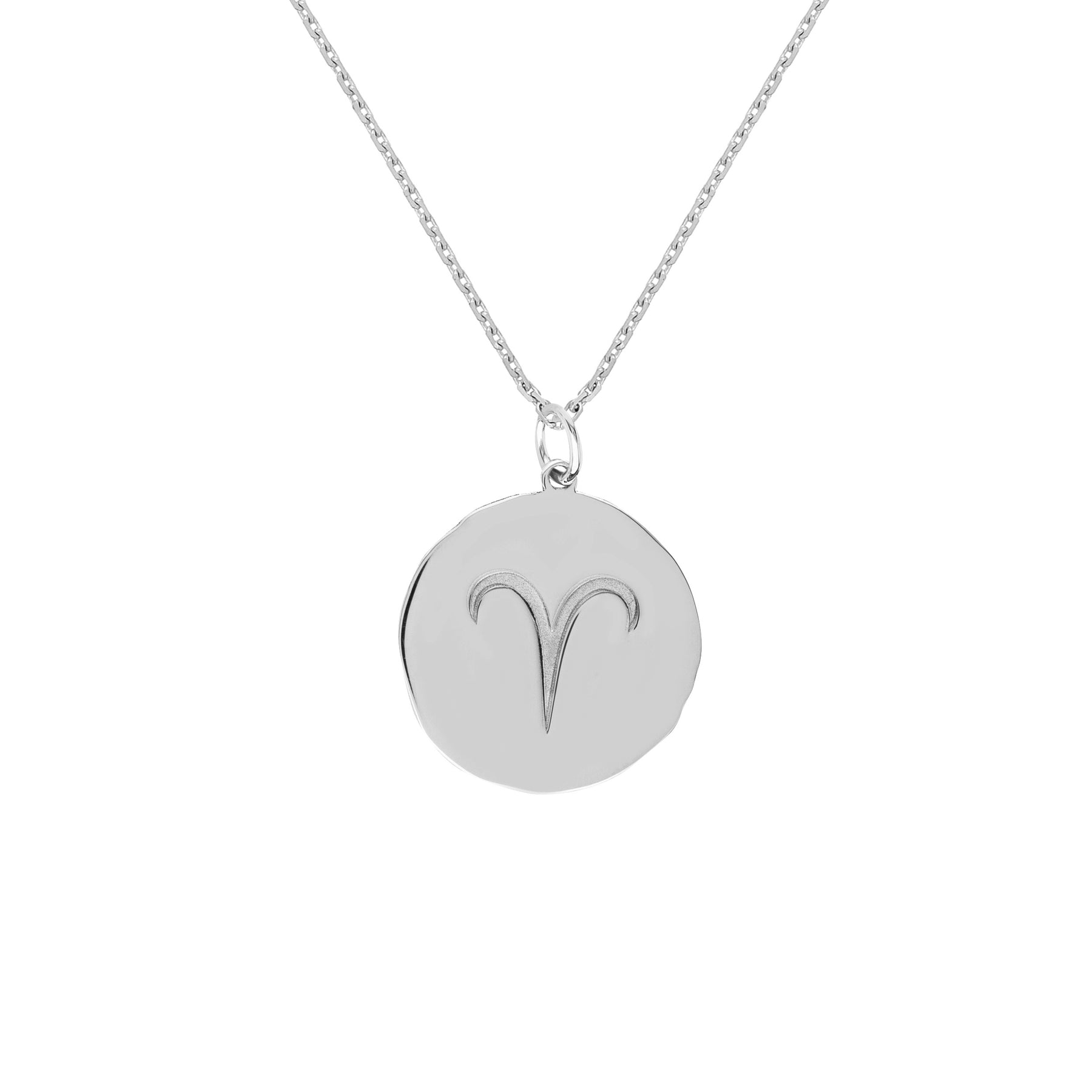 What's your sign? Aries is a passionate, motivated and confident leader. This pendant necklace is engraved with the Aries symbol representing the ram.