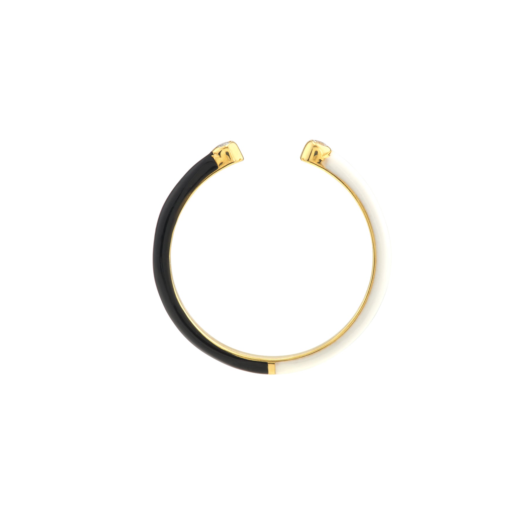 Diamond Cuff Ring with 1/2 White 1/2 Black Enamel