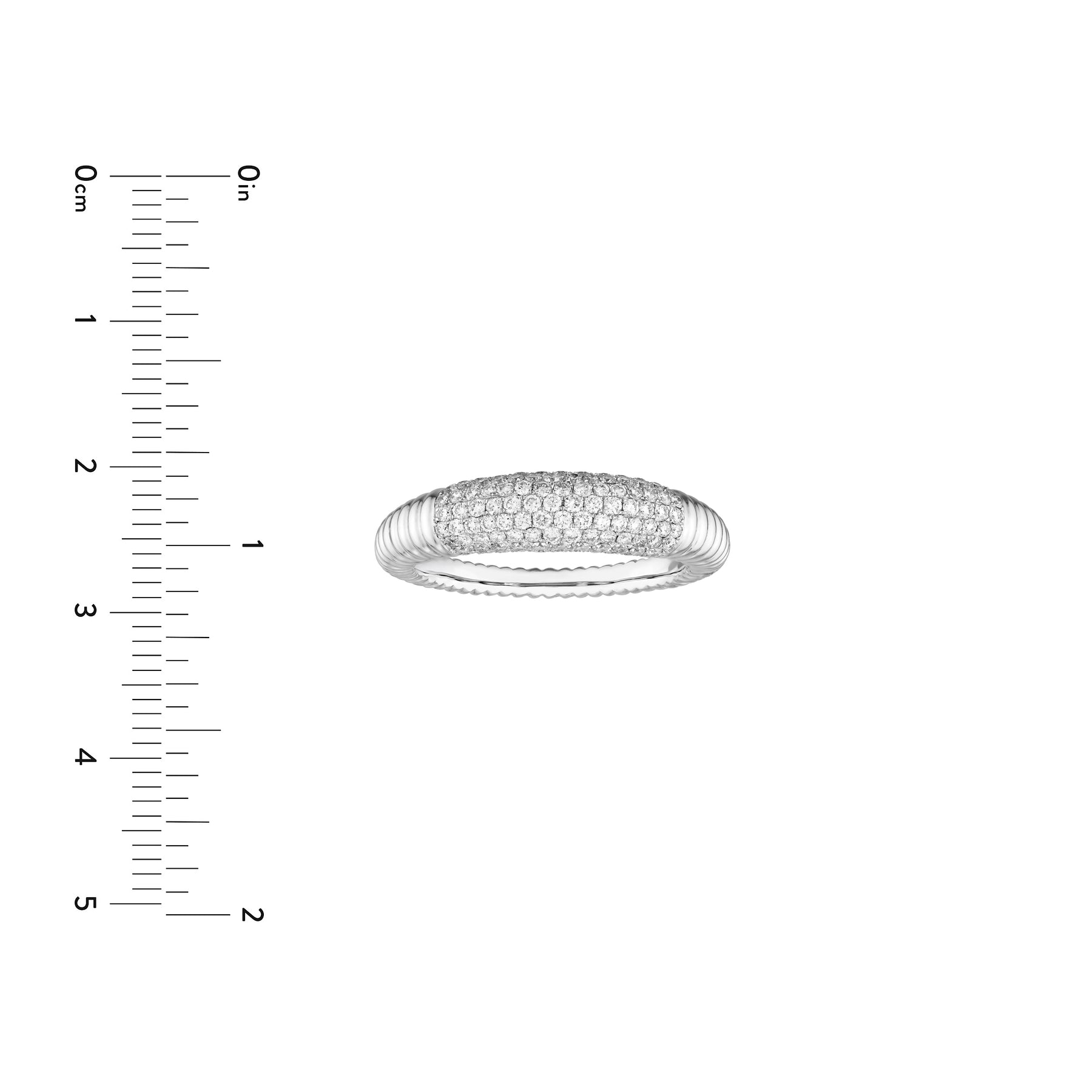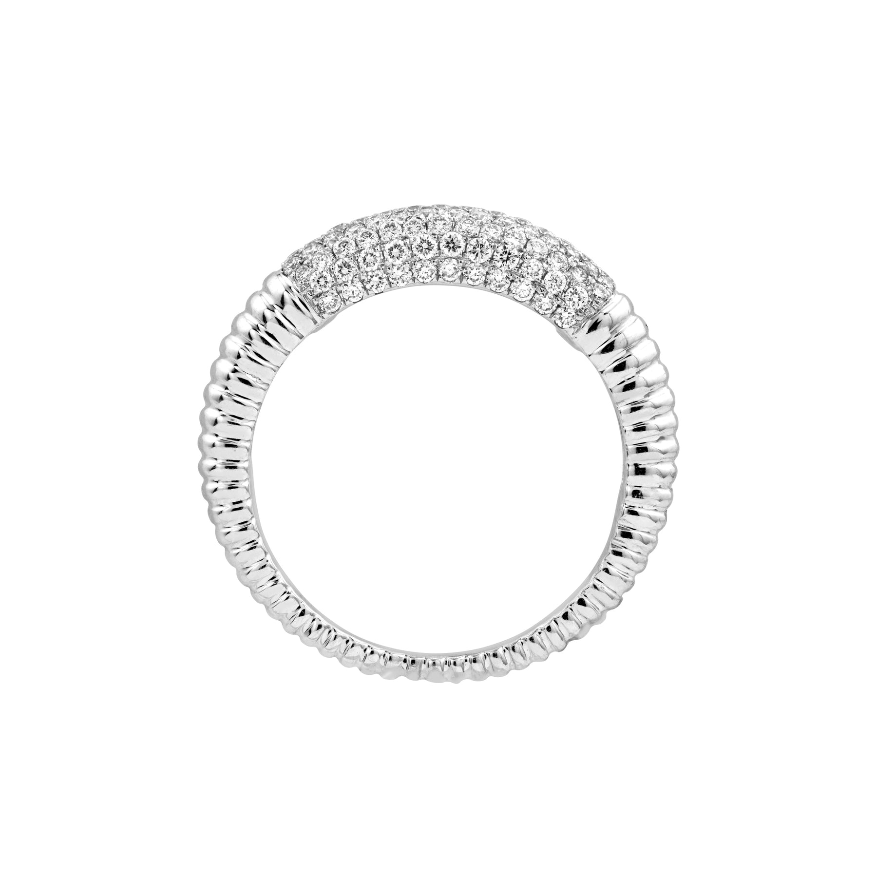 Diamond Pavé Ribbed Dome Ring (White Gold)