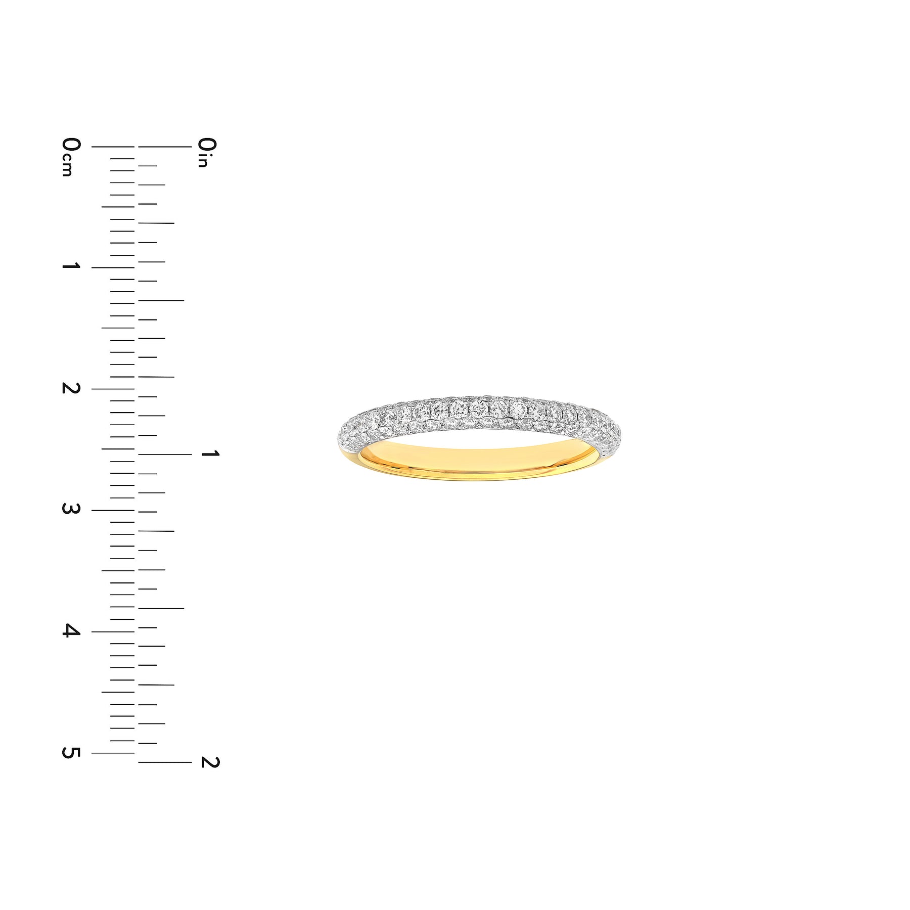 The perfect sparkling addition to your stack. This ring features 5/8tcw, 1.3mm diamonds set halfway on a 14K yellow and white gold band.