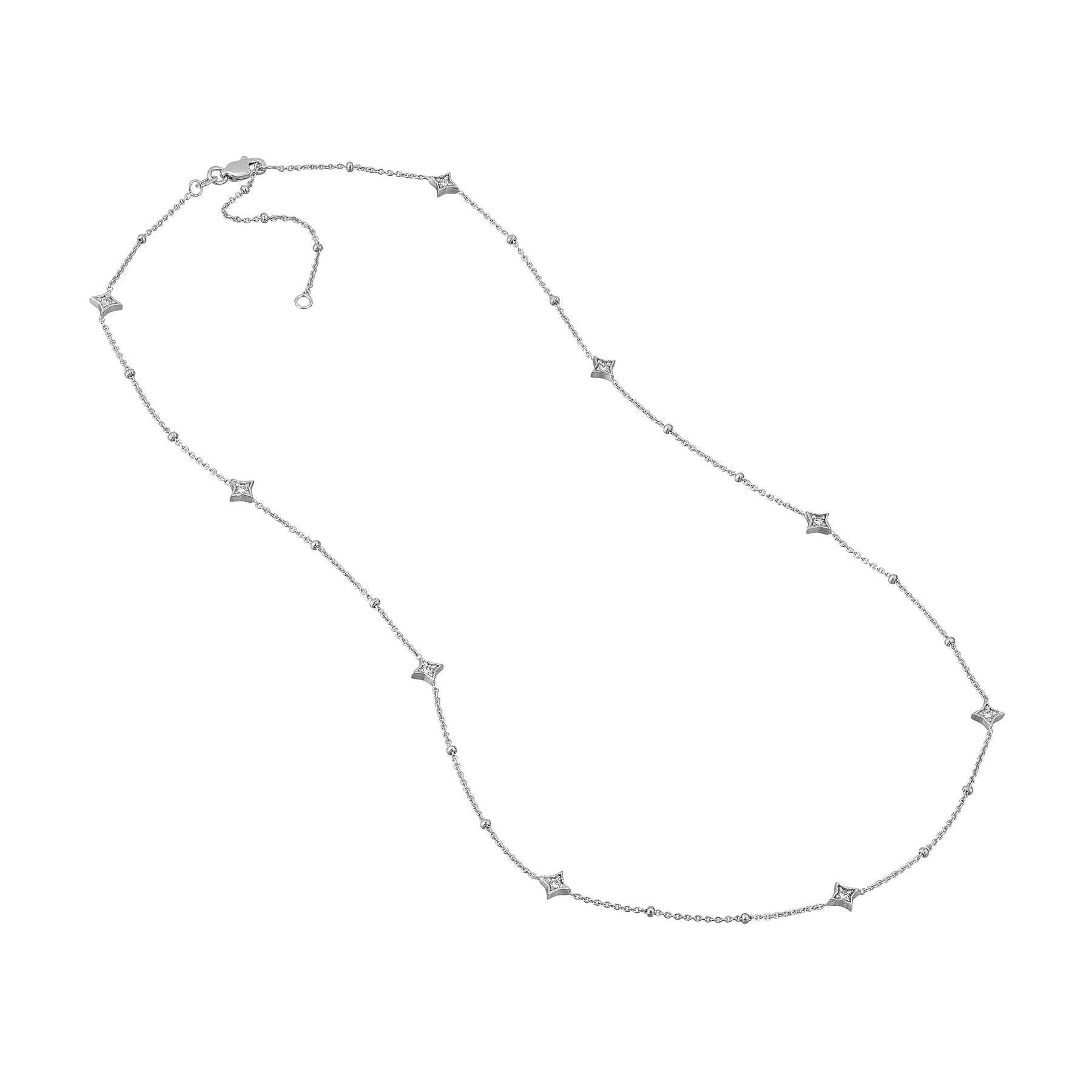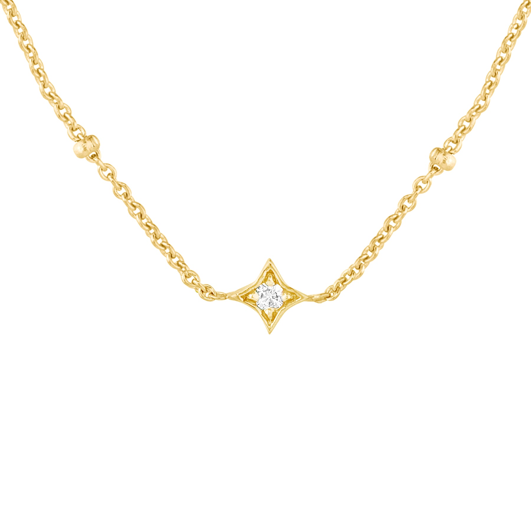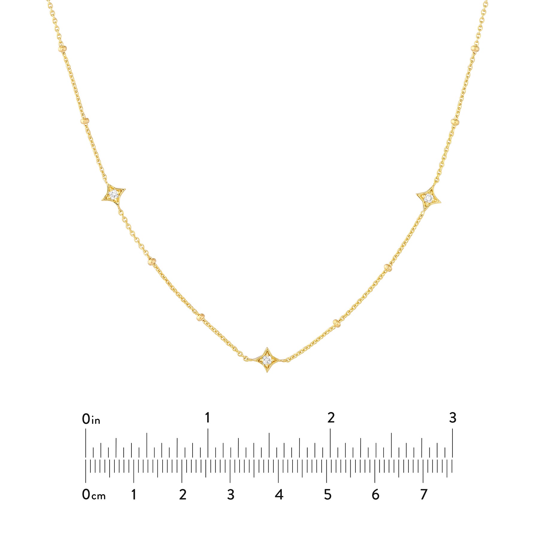 Channel elegance with a shimmering diamond necklace. This adjustable necklace with 1/3tcw diamond star bezel and bead stations is crafted in 14K gold.