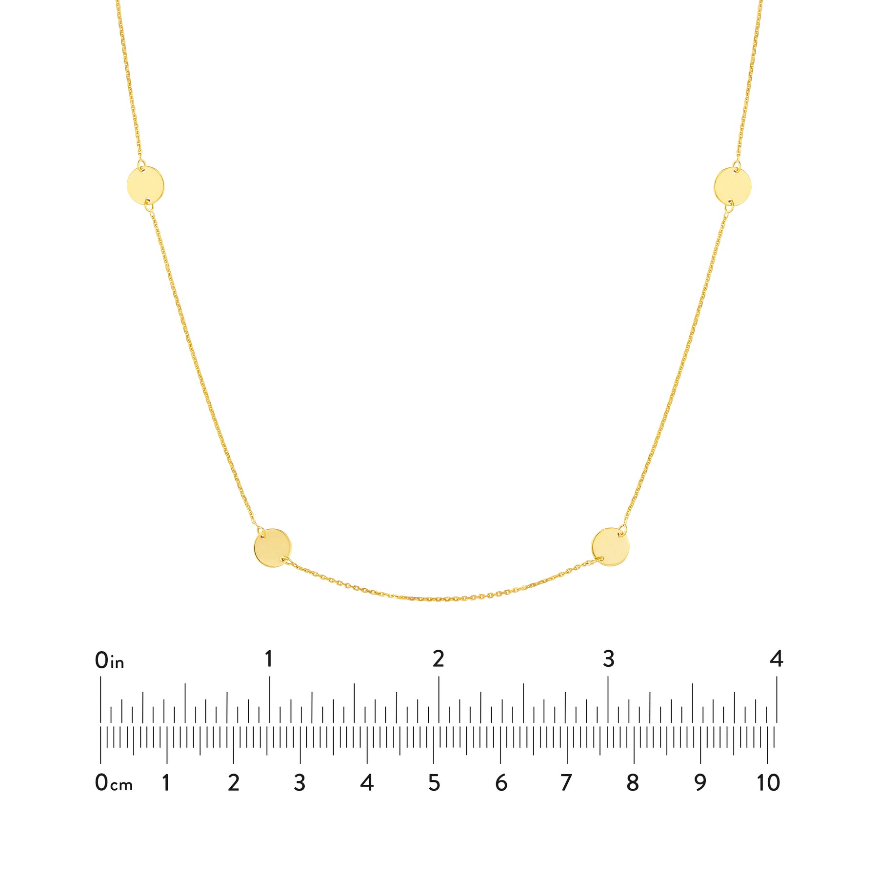 Make a sweet statement with an understated station necklace. This 14K gold necklace features six delicate 6mm disc stations.