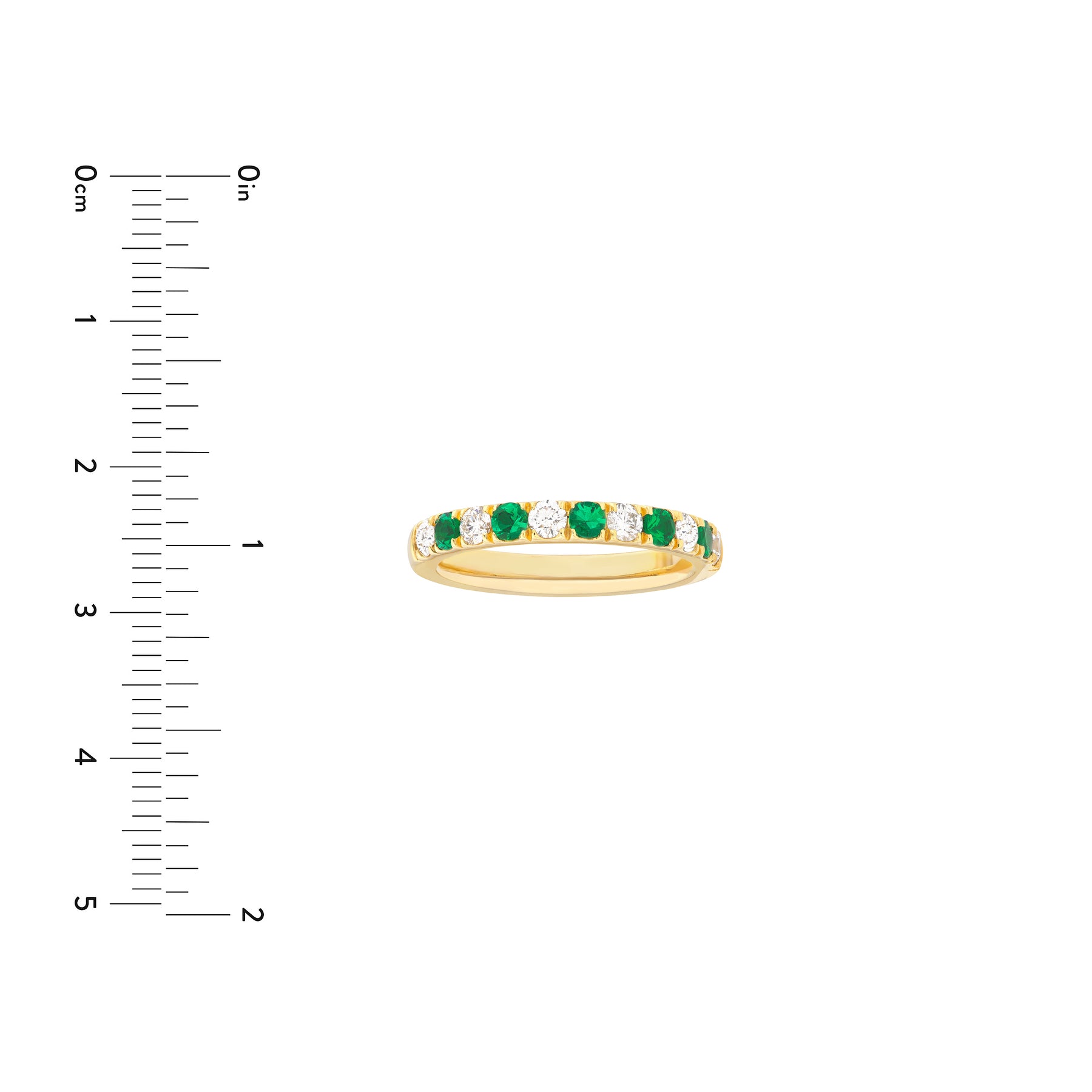Radiate color and sparkle with this 3/8tcw, 2.6mm Diamond and Emerald Band. Featuring alternating diamonds and emeralds set halfway around the band.