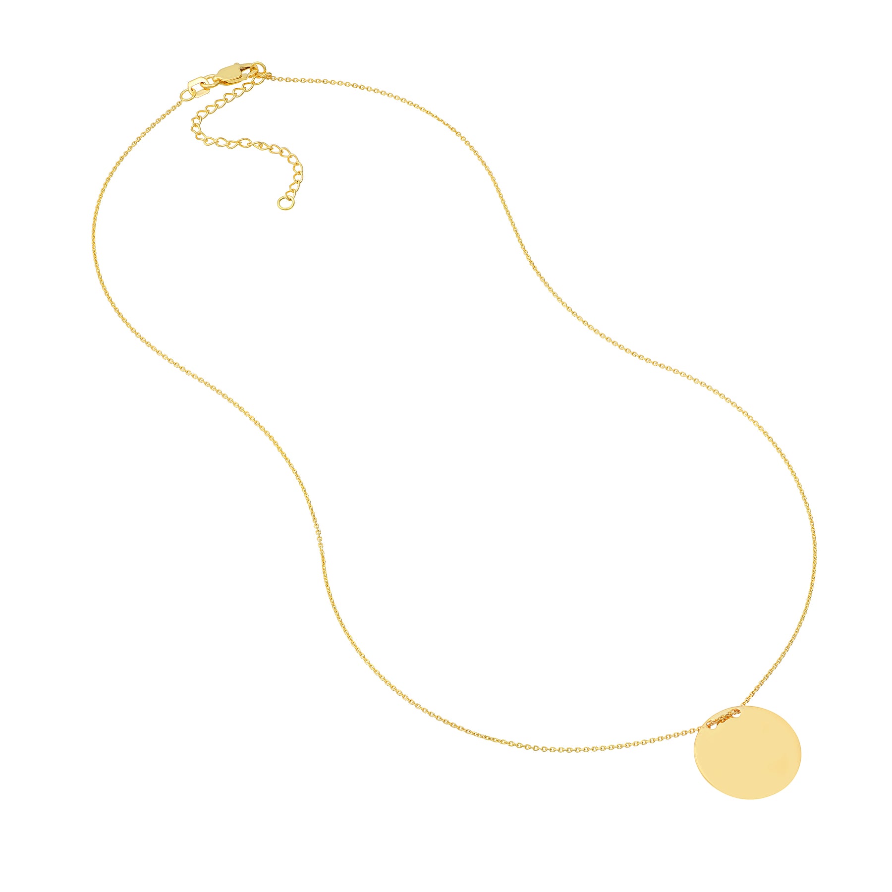 A name plate necklace makes the perfect canvas for customization. Make this 14K gold engravable circle plate necklace unique with your name.
