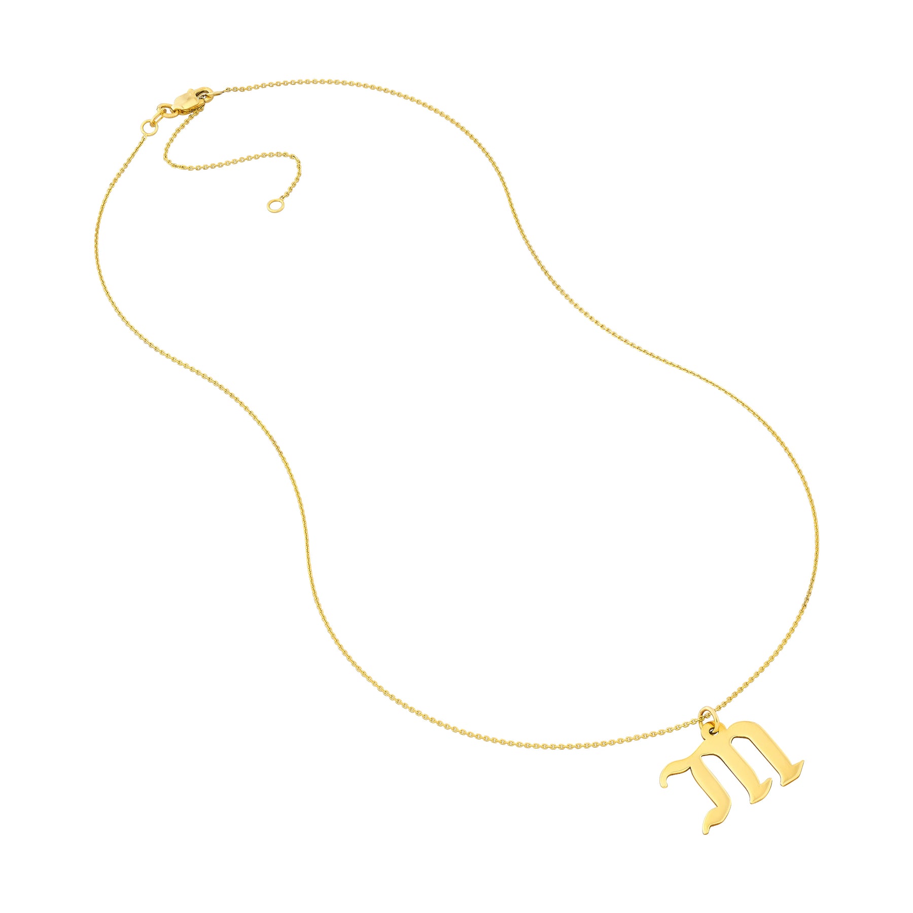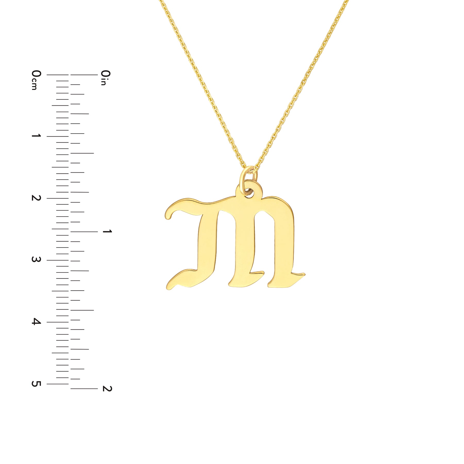 Rock your initial in our 15mm Gothic font. This initial necklace is guaranteed to stand out in 14K gold. Pick a letter and let the necklace do the talking. Adjustable from 16 to 18 inches.