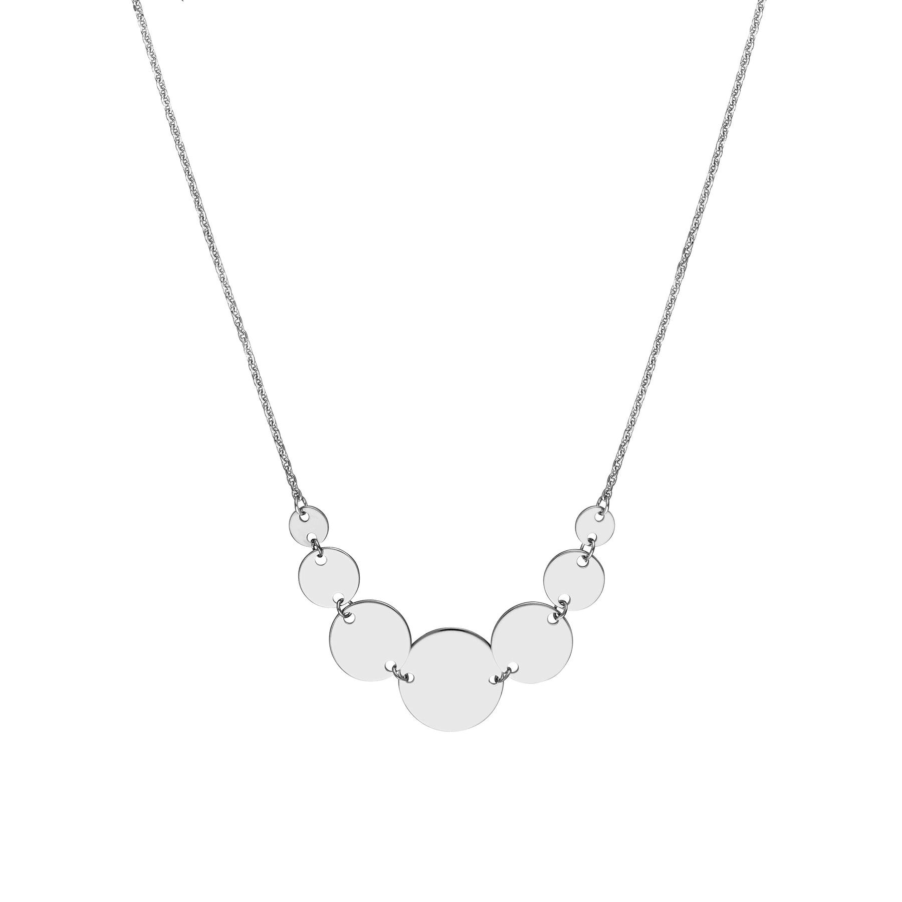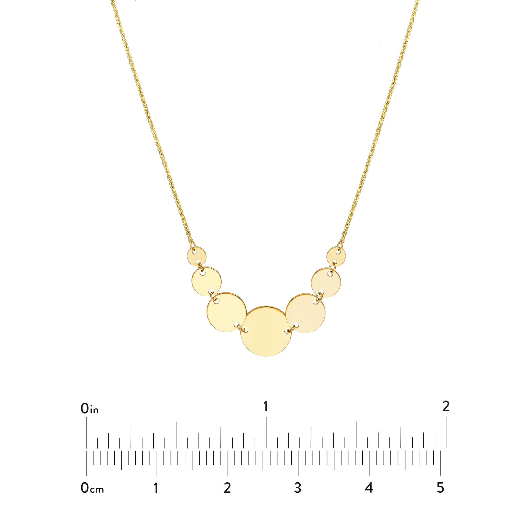 Channel your inner flower child with a boho disc necklace. This adjustable necklace features a graduated disc station in 14K gold.