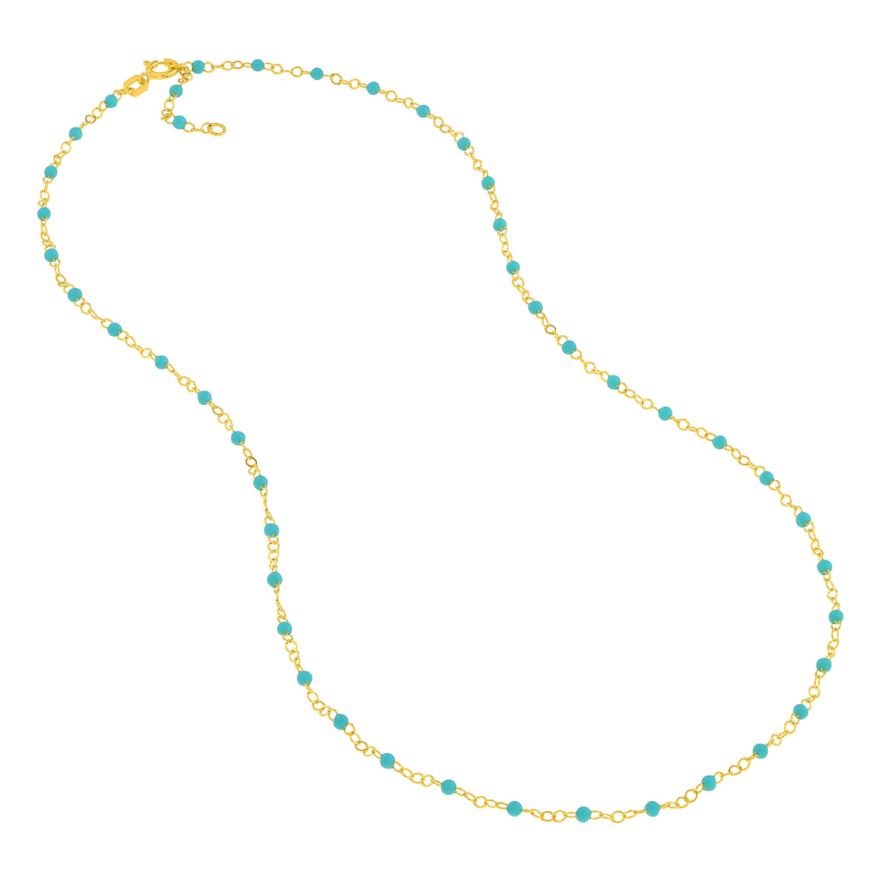 From our Color Romance Collection, this light turquoise enamel beaded piatto chain will add a pop of color to any outfit. Crafted in 14K gold, this 1 inch adjustable chain secures with a spring ring.