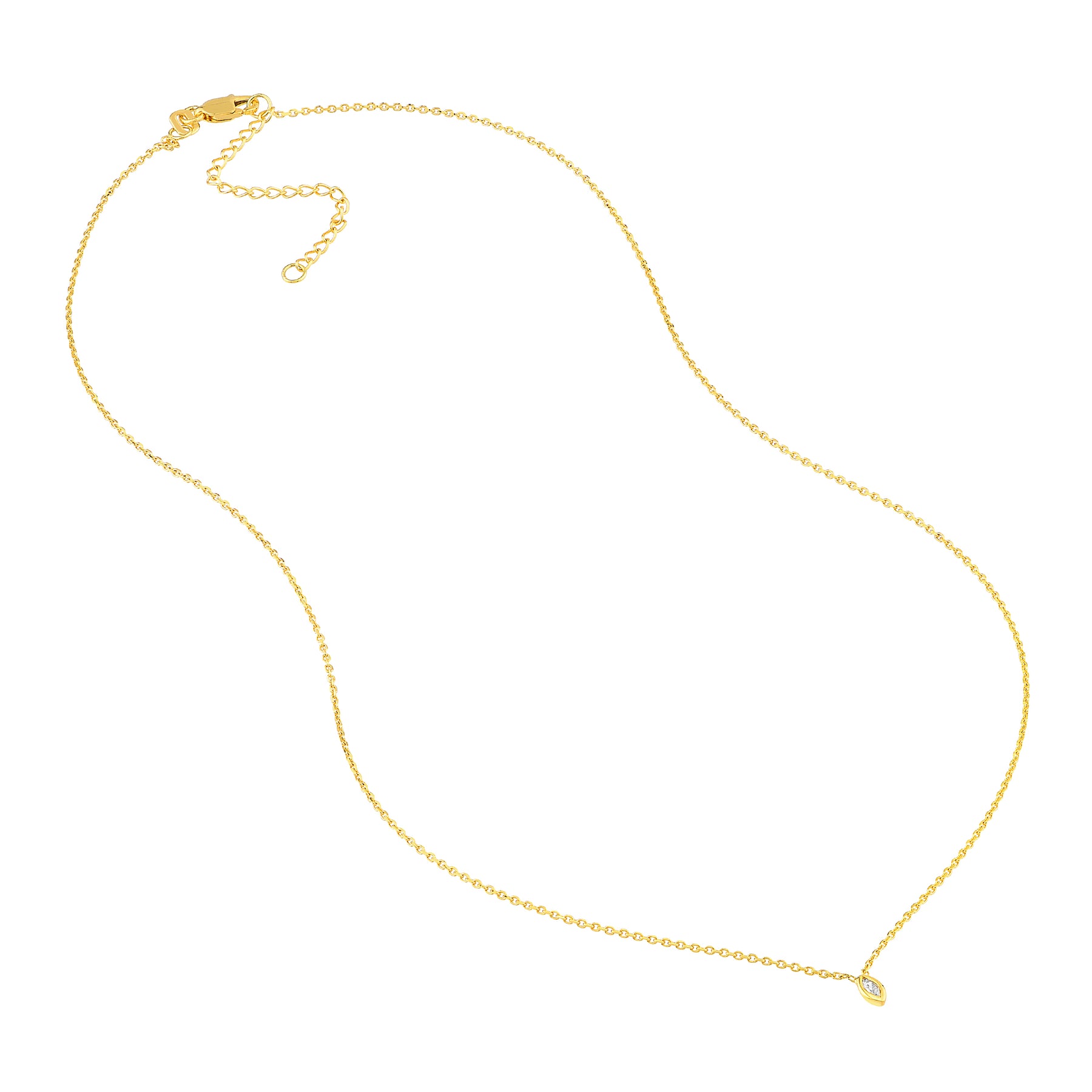 Add some sparkle to your favorite outfit with this diamond drop necklace. Crafted in 14K gold, this necklace features a single 1/20tcw diamond marquise-shaped bezel.