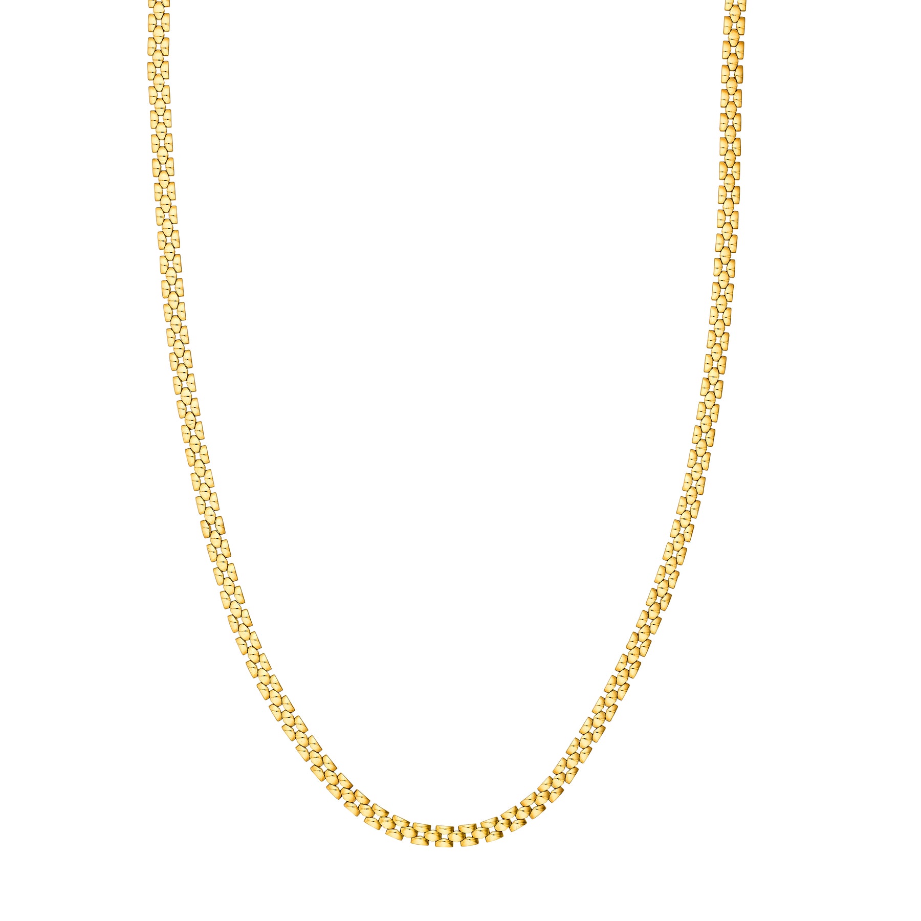 This chain features a distinctive design and offers endless style possibilities. Elevate your accessories with this 2+1 Link chain made in 14K gold.