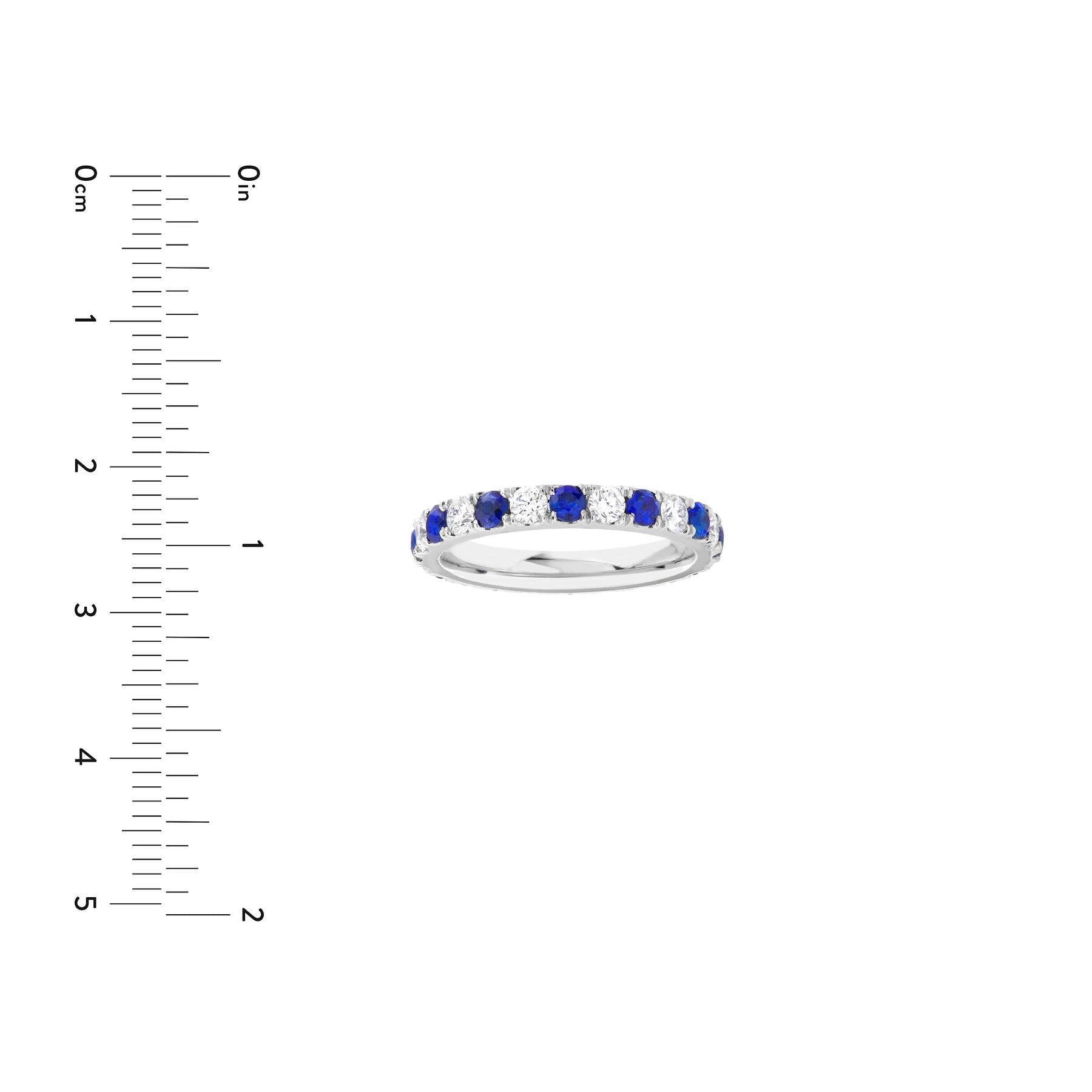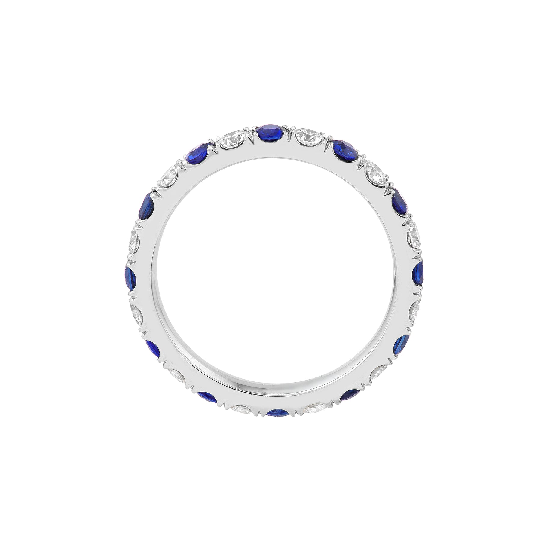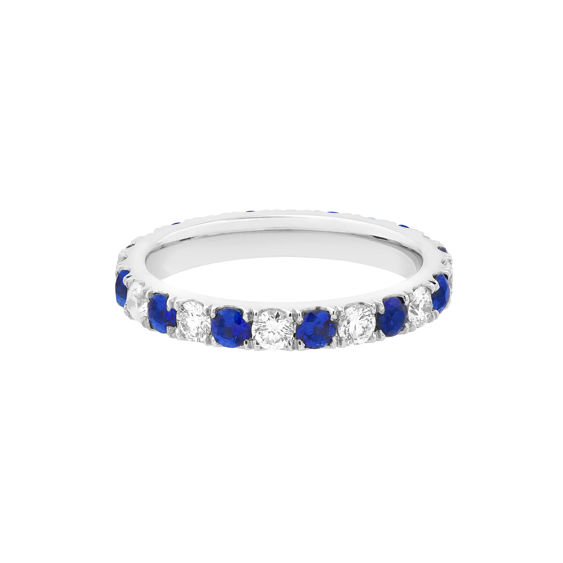 This classic eternity band ring combines timeless elegance with dazzling appeal. Set with alternating diamonds and sapphires, this ring is made-to-order with care.