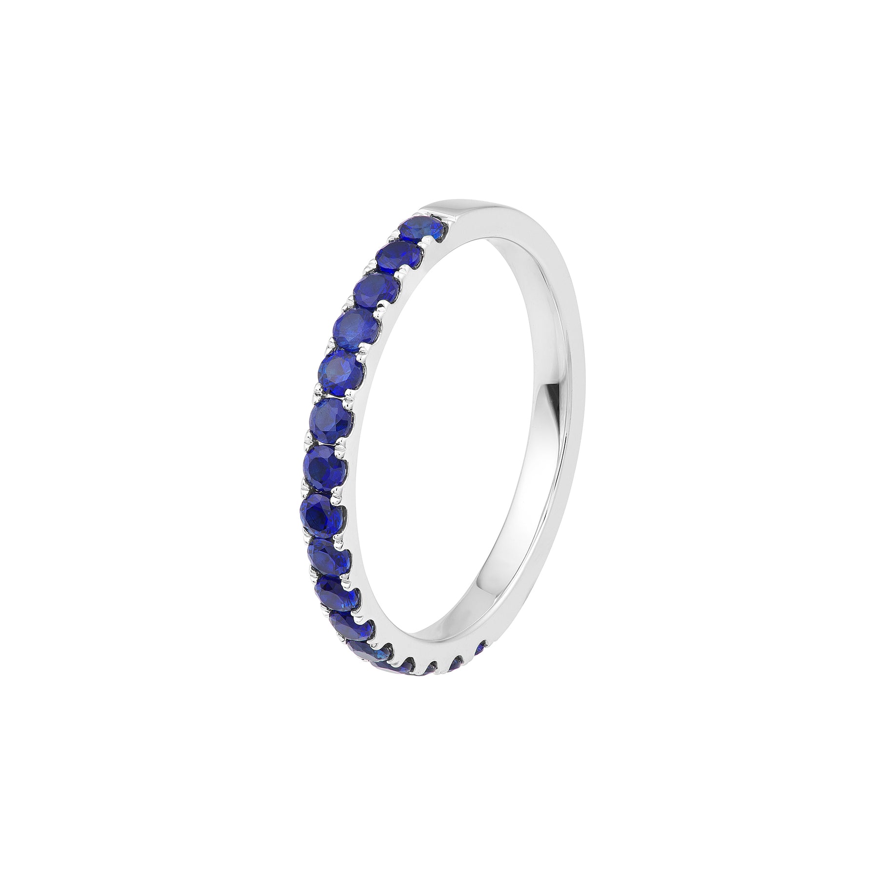 Adorn yourself with color This beautiful 2mm band features sapphire gemstones halfway around, adding a vibrant touch to your stack.