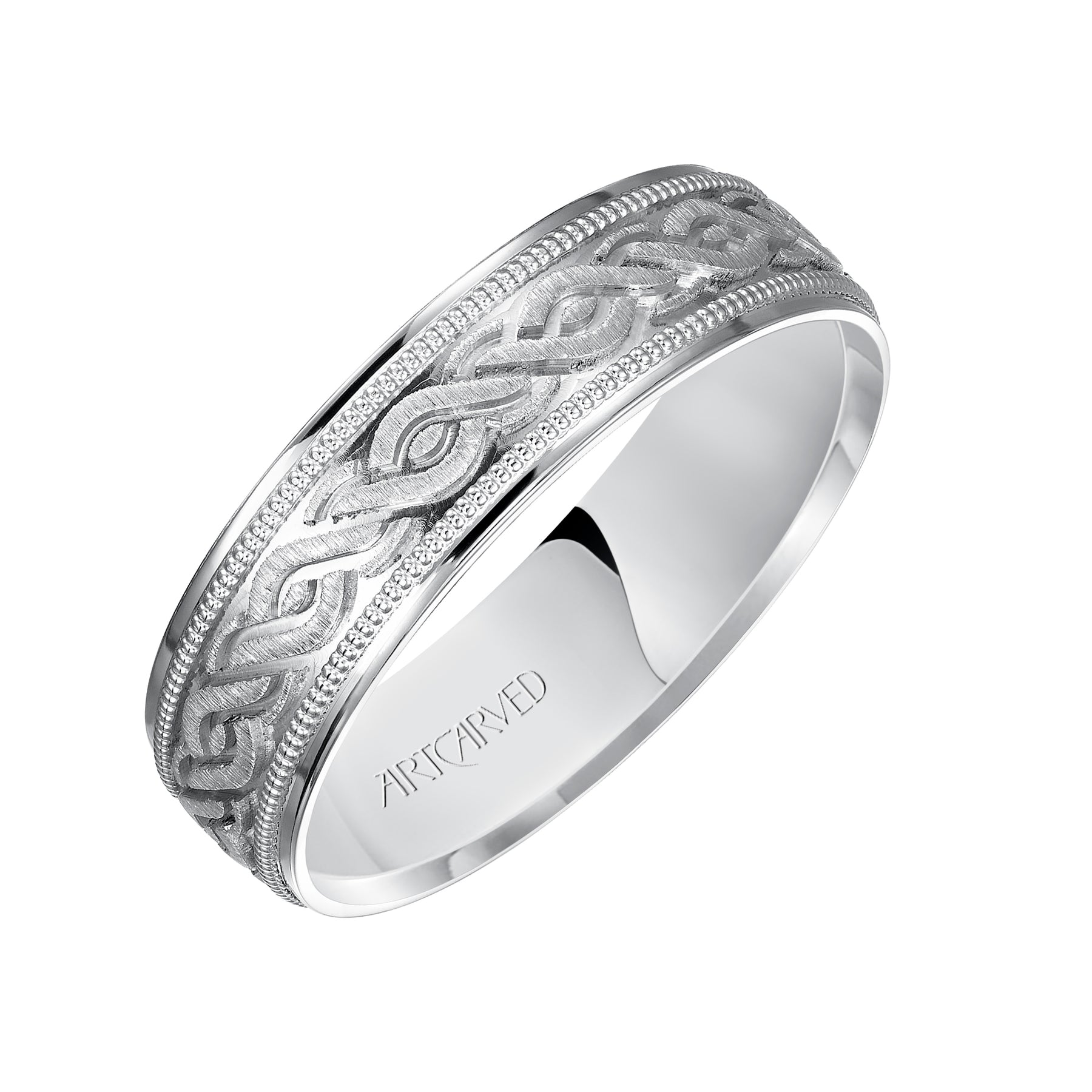 11-WV7322W-G.00 - ARTCARVED - Comfort Fit, engraved wedding band with milgrain detail and flat edgess