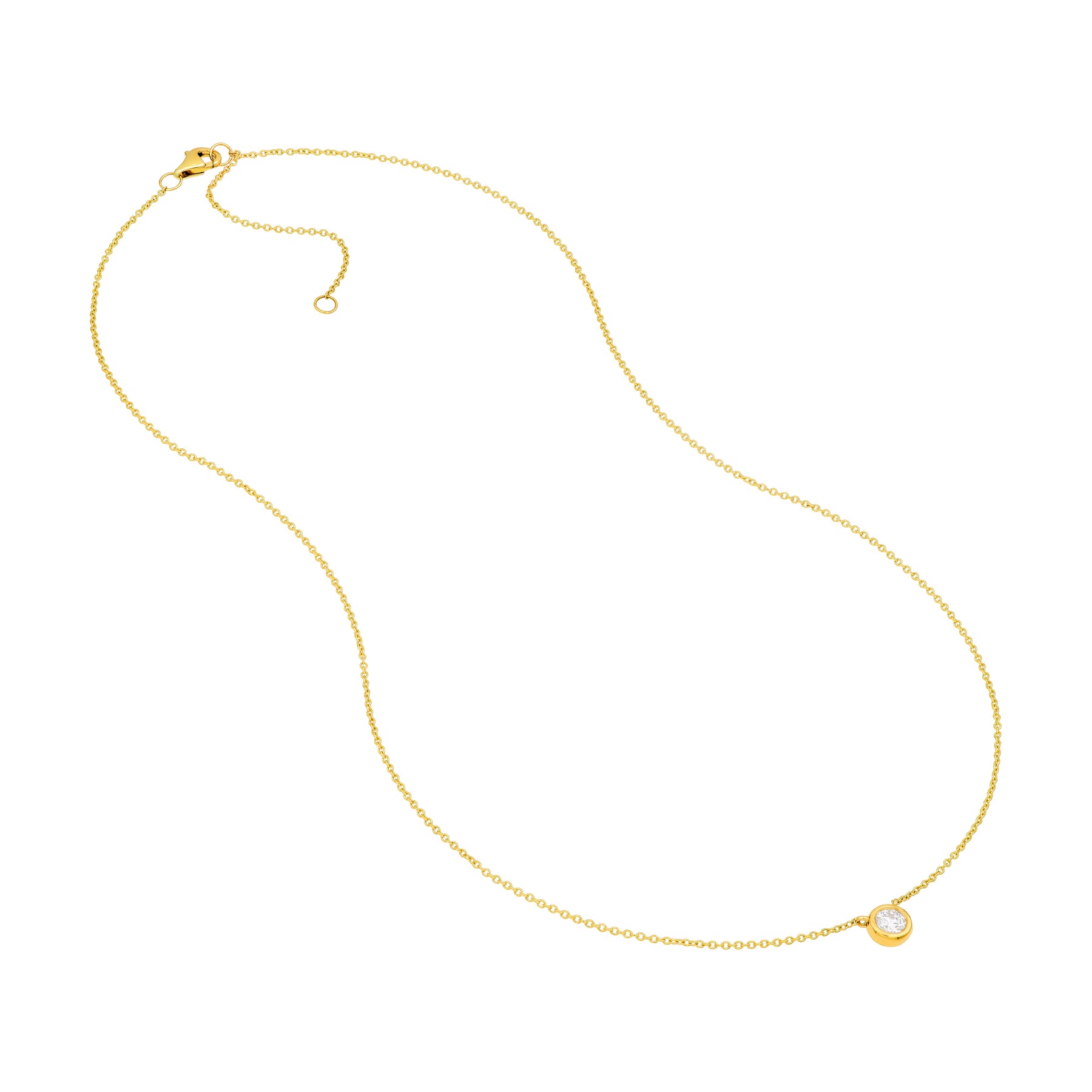 Show off your sparkle with this dazzling 4mm Diamond Bezel necklace Designed with a 2-inch adjustable jump ring extender and secured with a pear shaped lobster lock.