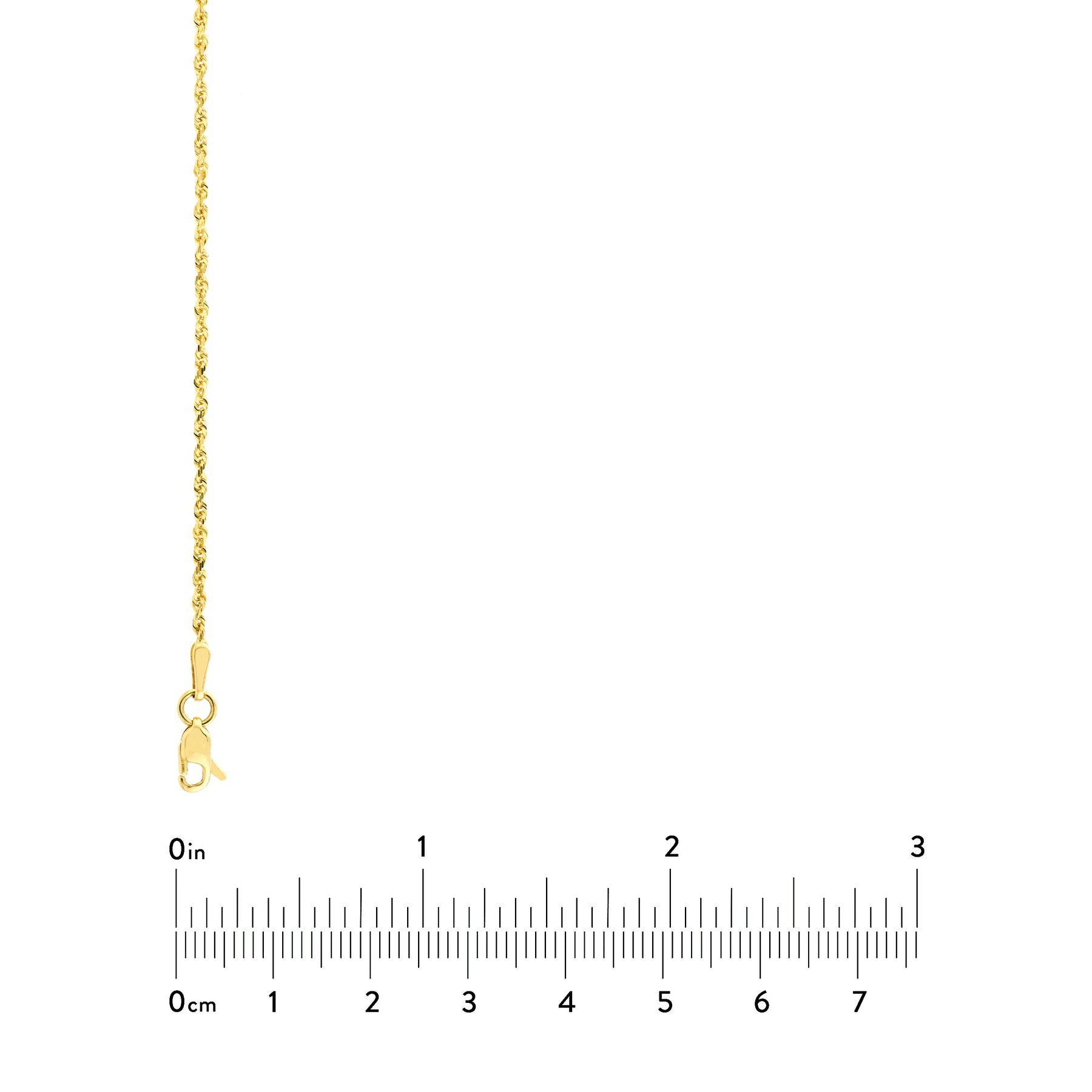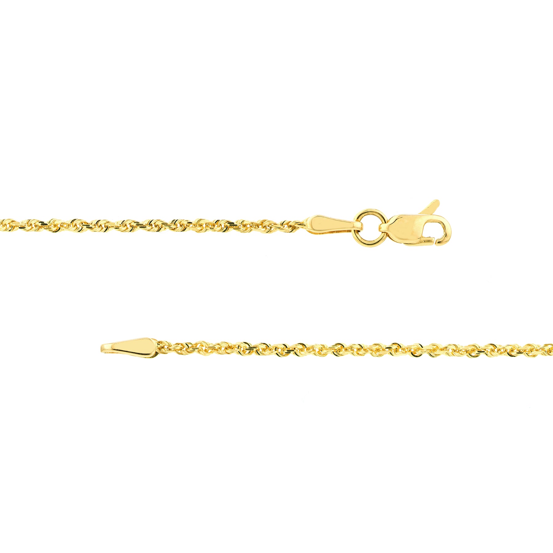 The fine quality of this chain is sure to impress. The Solid Diamond-Cut Rope Chain is made to shine. This chain measures 1.56mm wide.