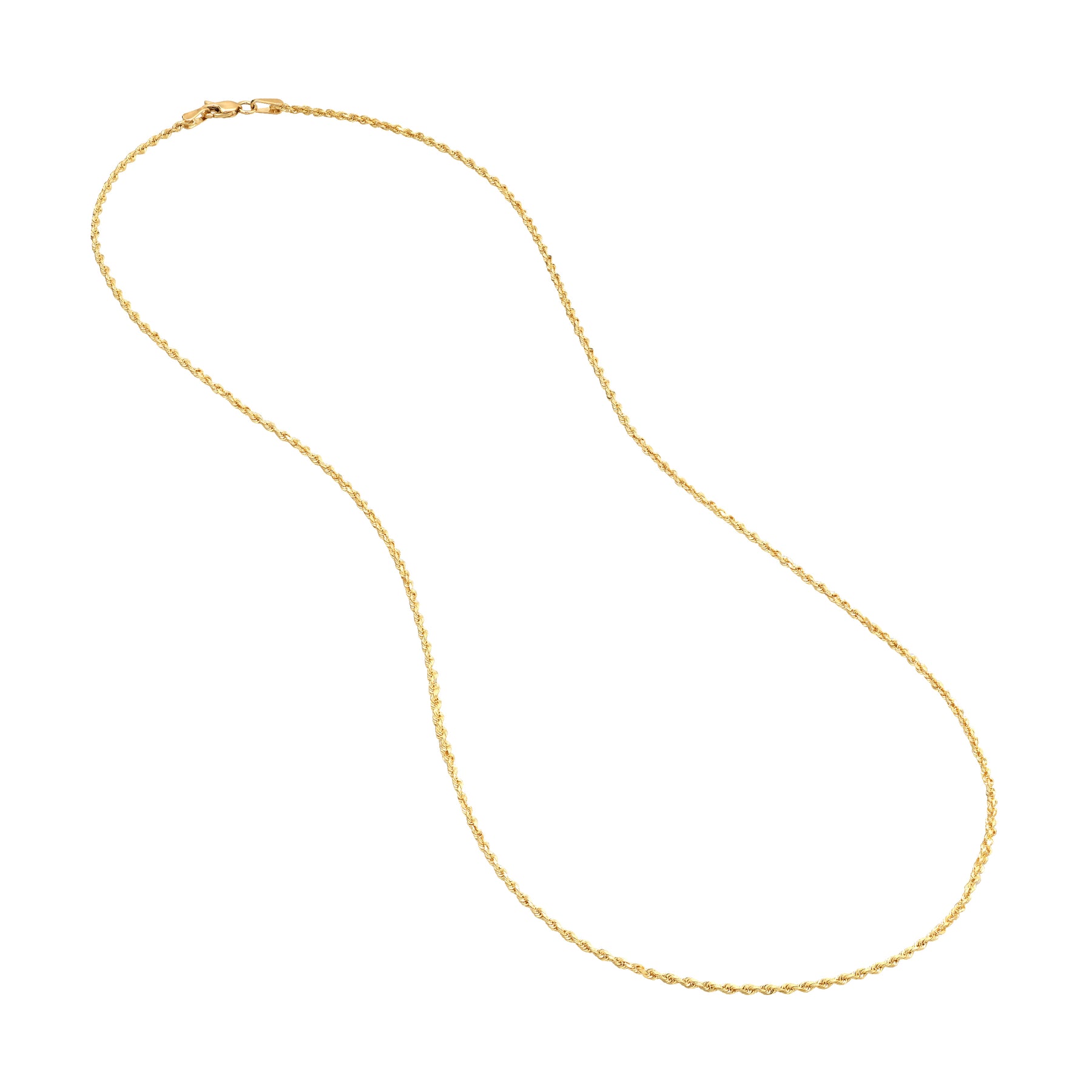 The fine quality of this chain is sure to impress. The Solid Diamond-Cut Rope Chain is made to shine. This chain measures 1.8mm wide.