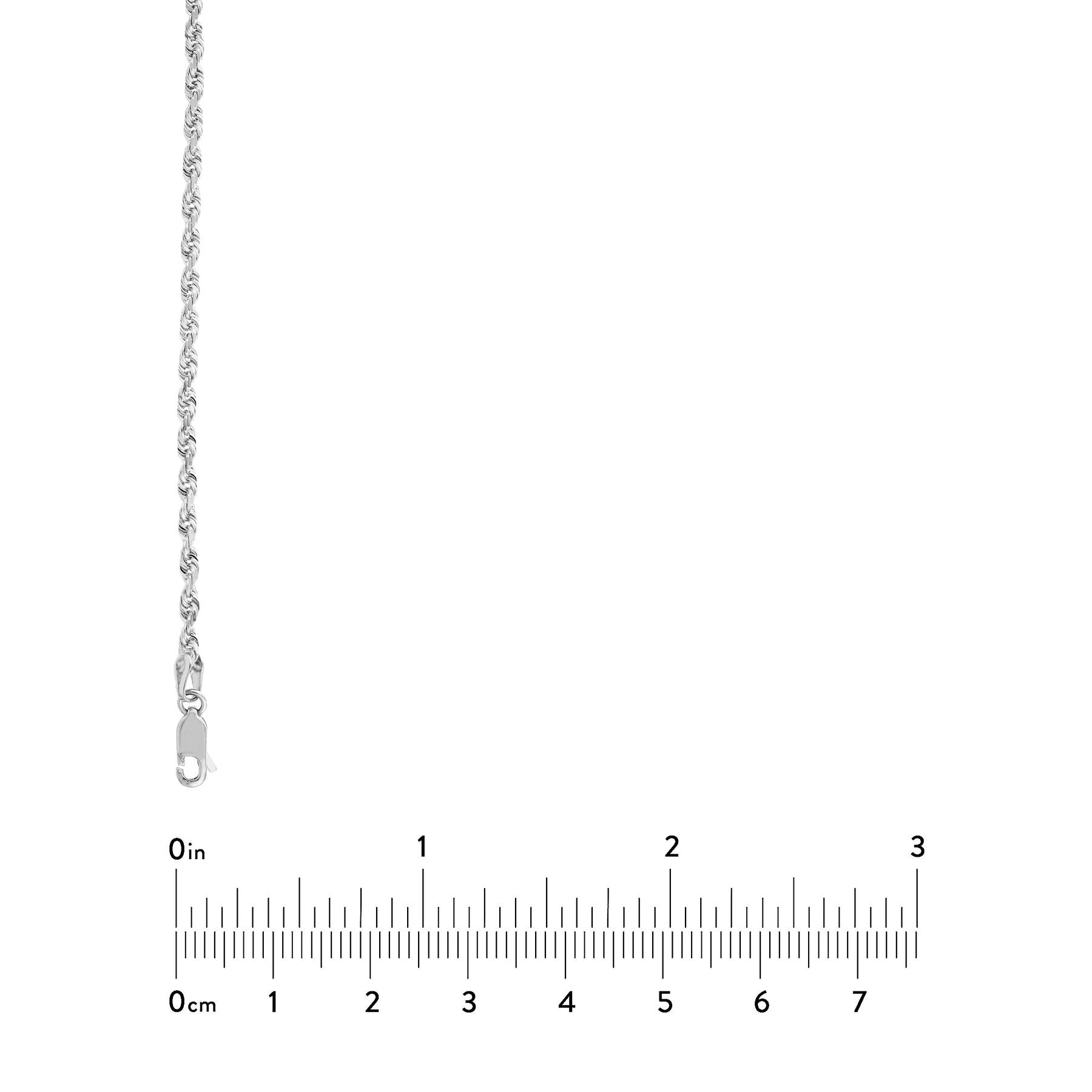 The fine quality of this chain is sure to impress. The Solid Diamond-Cut Rope Chain is made to shine. This chain measures 2.7mm wide.
