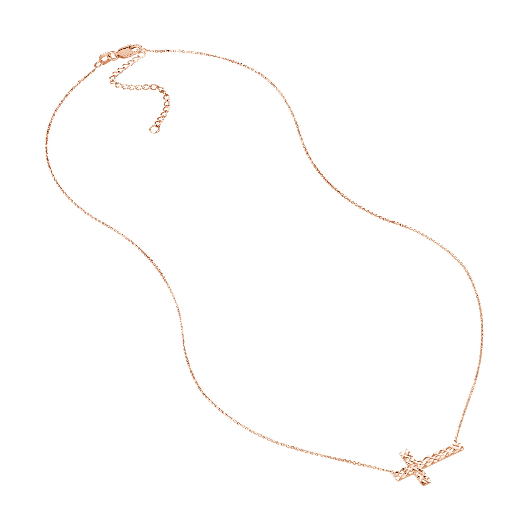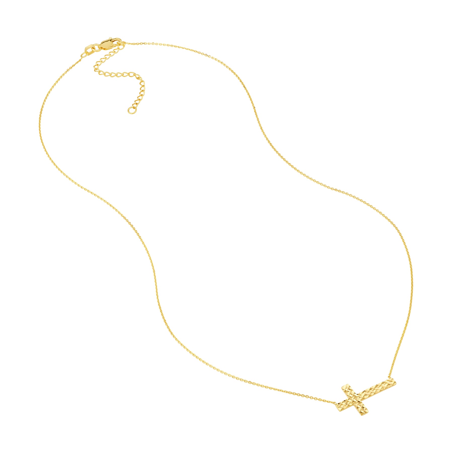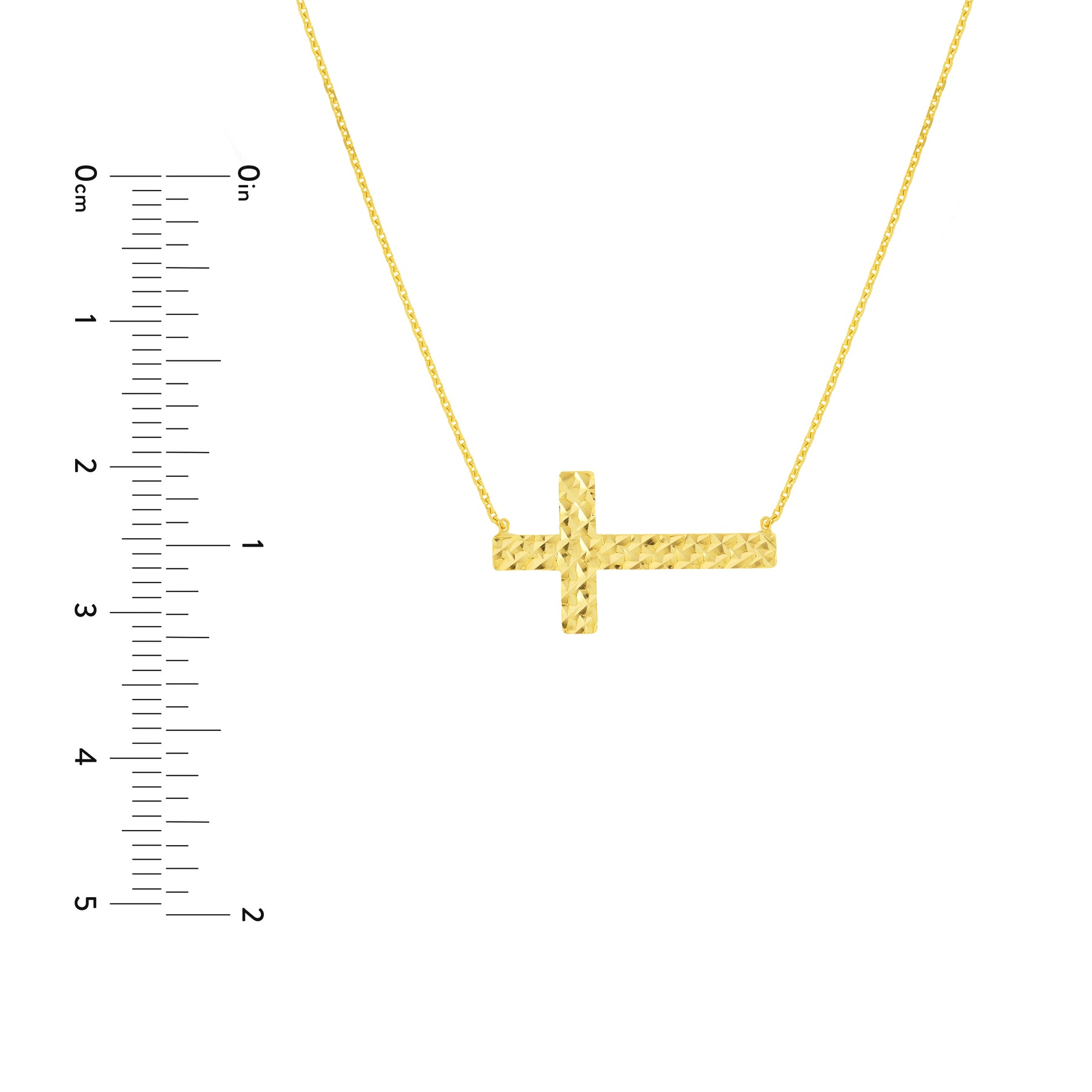 Show off your faith with elegant conviction by wearing this diamond-cut sideways cross necklace in 14K gold. For a more subtle look, reverse to the smooth side.