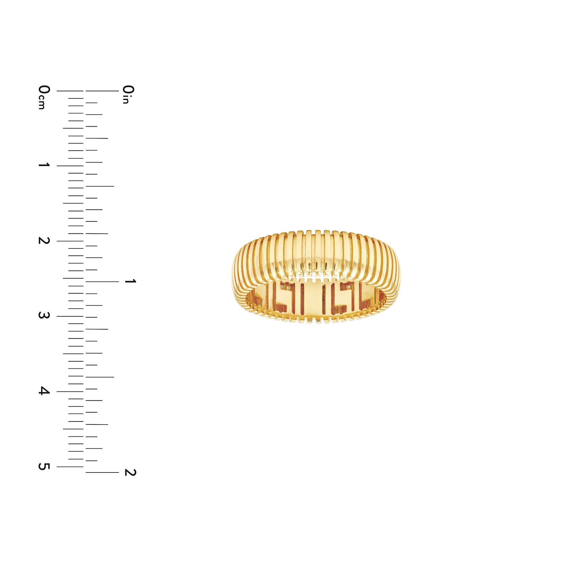 Designed to shine solo or stacked, this 14K gold band is iconic and sleek, with ribbed detailing that makes a statement.